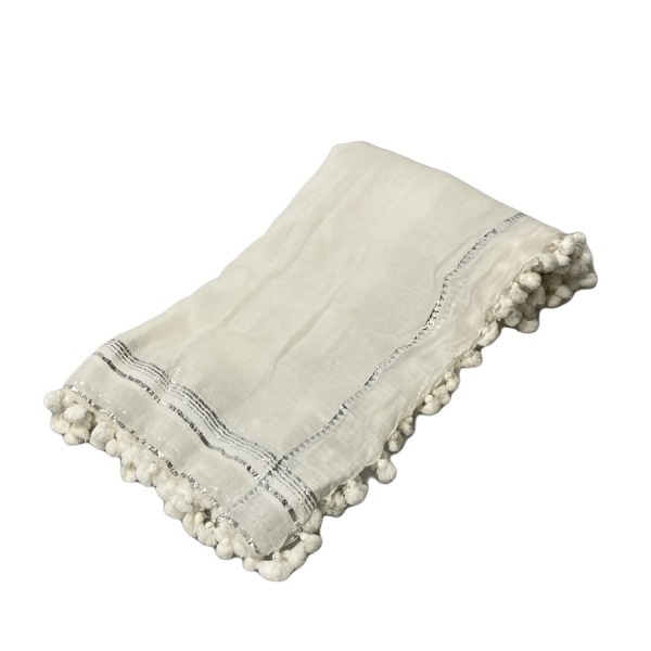 シトラス Citrus ストール(ショール) - コットン、シルク 白×シルバー マフラー
