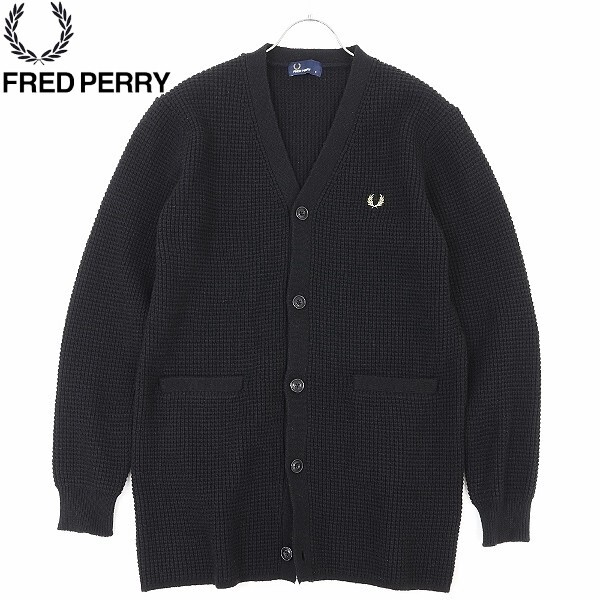 ◆FRED PERRY フレッドペリー ロゴ刺繍 ニット カーディガン 黒 ブラック S | |