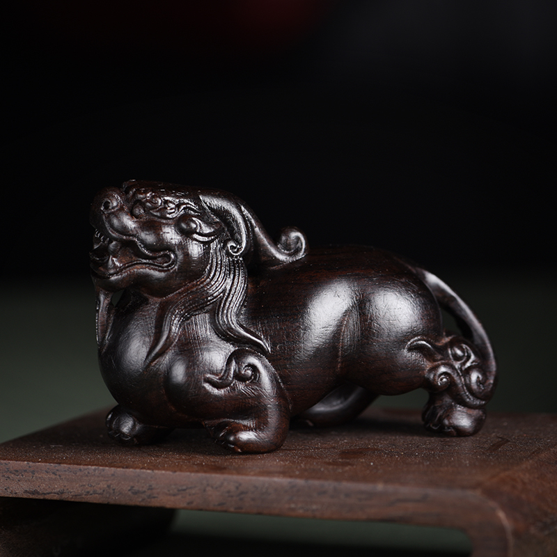 新品未使用人気推薦高品質黒柿無垢材 貔貅柄 木彫り