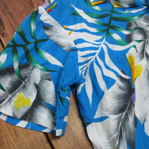 ★Goods アメリカ古着 80s頃の アロハシャツナイスなユーズド感です★Size M (表記 M ) 着た感じ165cm-170cm肩幅 48cm, 身幅 56cm ,着丈 67cm 袖丈22cm★Condition 10/7使用感はございますが、目立つダメージはありませんしわ等あり★Material ? レーヨンぽい★color 青 ★Made in CHINA