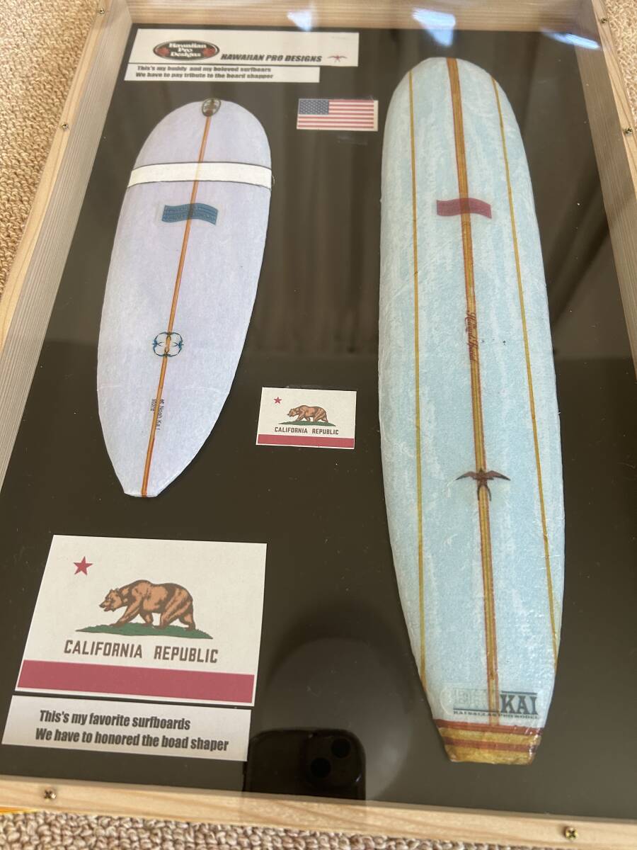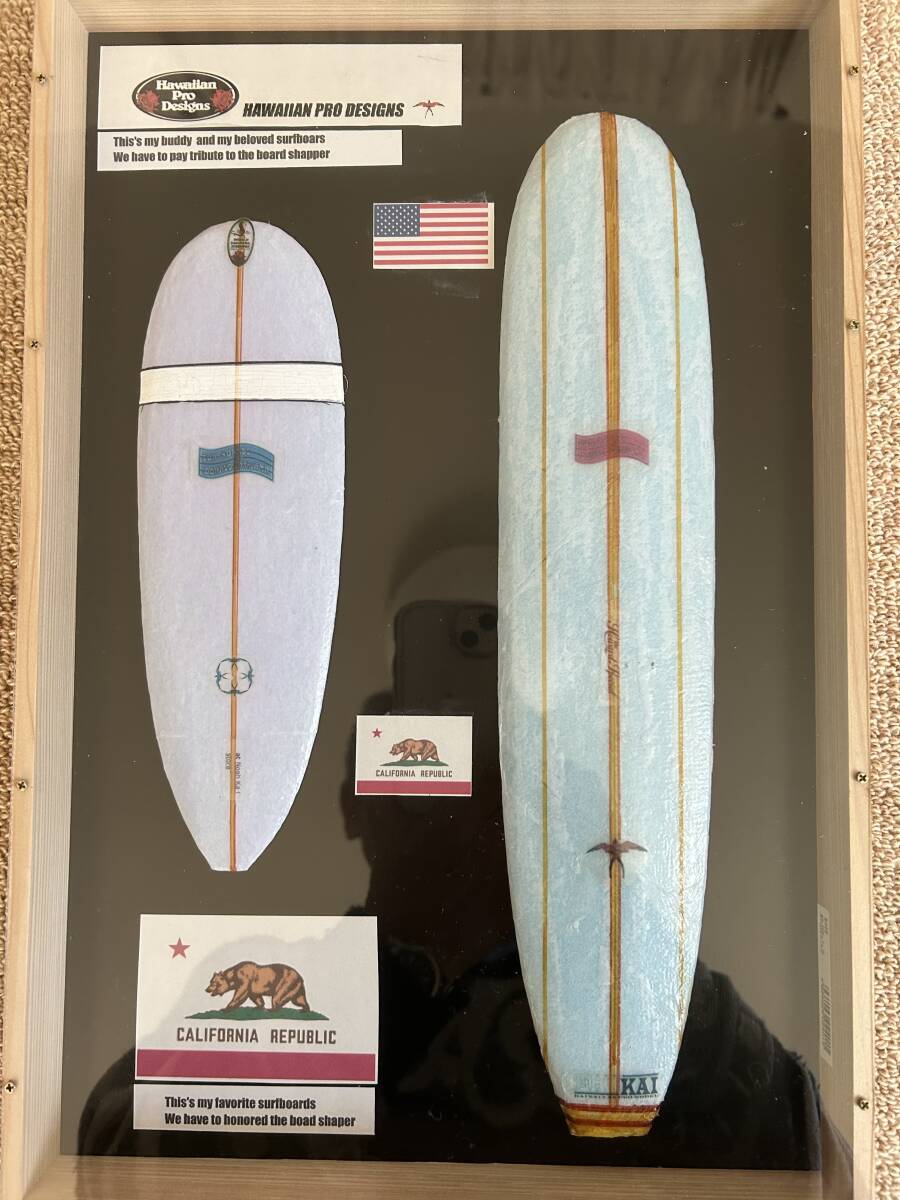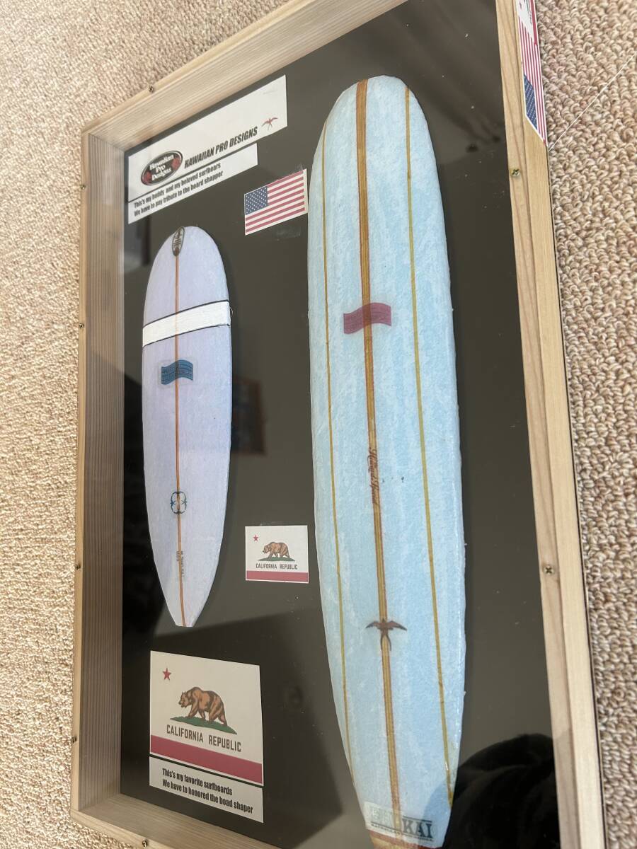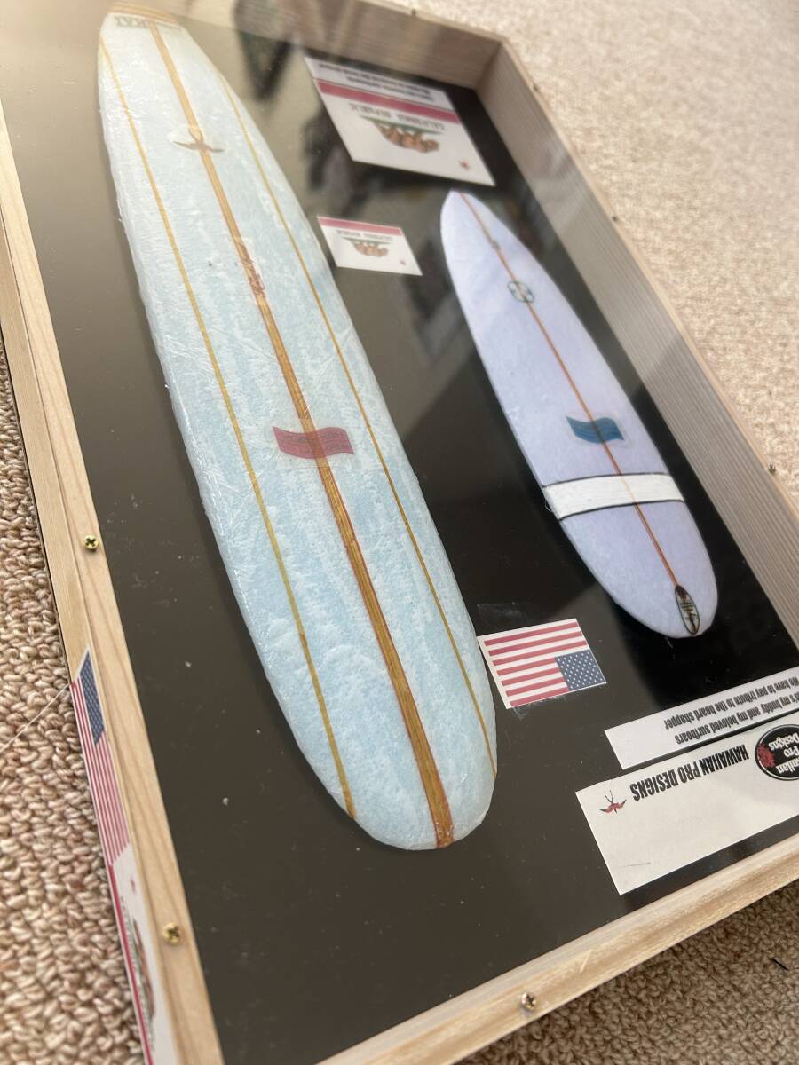 愛用のサーフボードをインテリア用に作成してみました。フォームの面取りで多めにできましたのでケースに入れて出展しました。