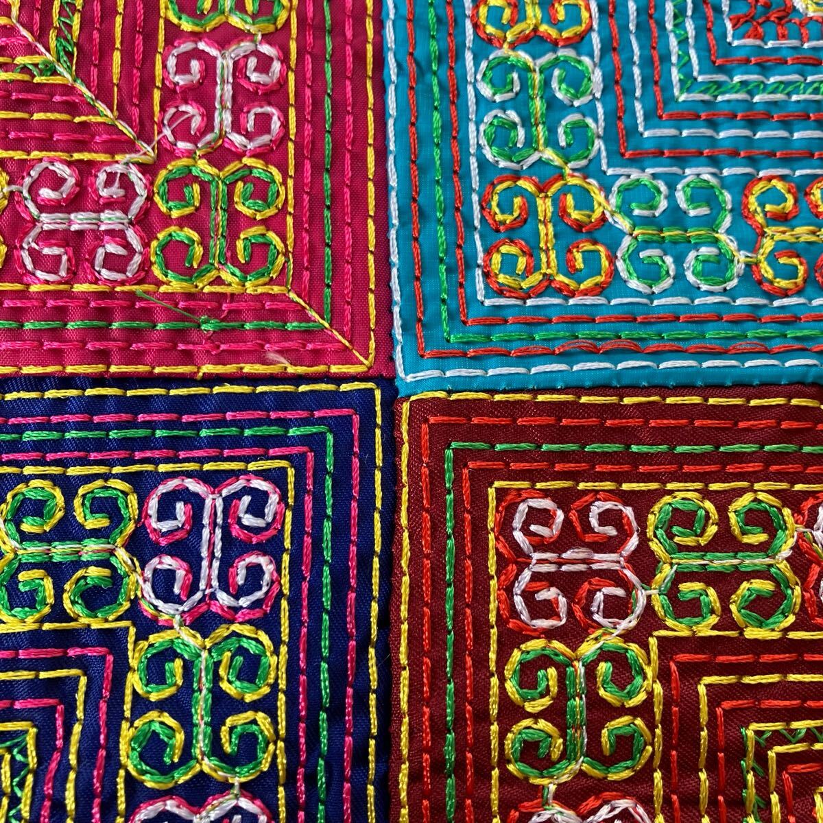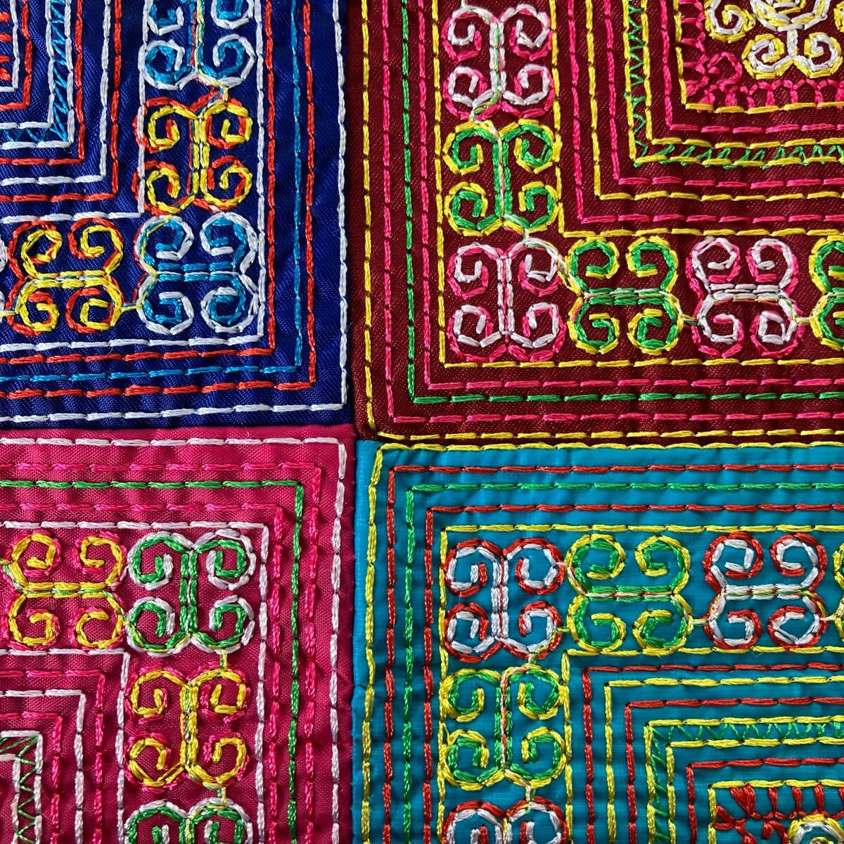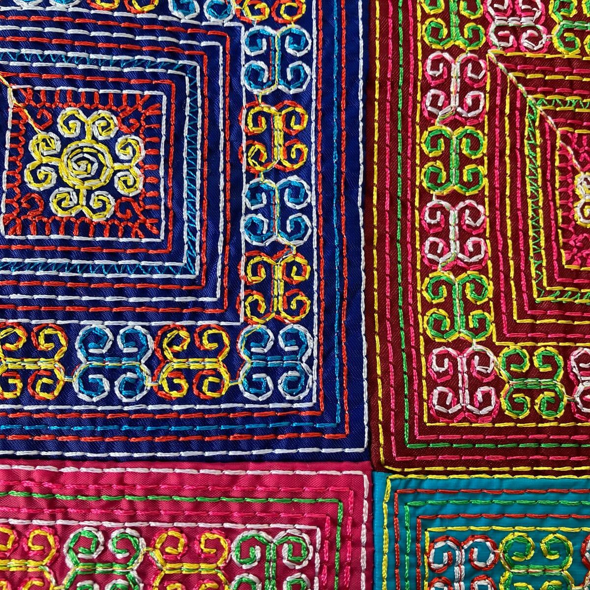 ラオスの伝統的なデザインは個性的で、色鮮やかな刺繍があでやかな品です。