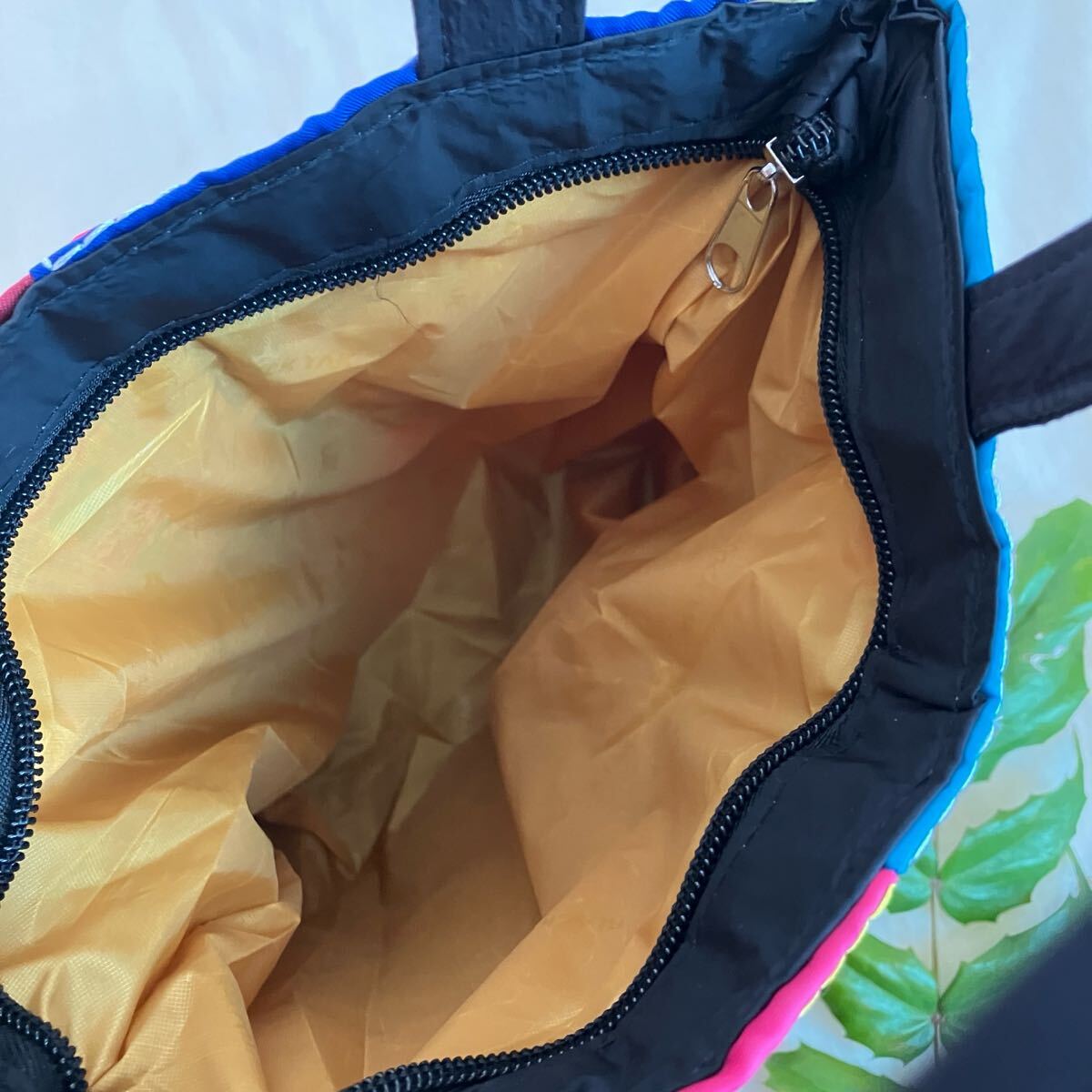 レッド・ブルー・ピンク・ターコイズグリーンのかわいい地色に、細かい刺繍が楽しい、ミニバッグ・ミニトートバッグ・ランチバッグです。
