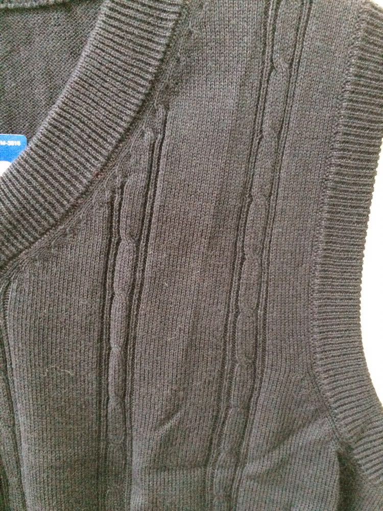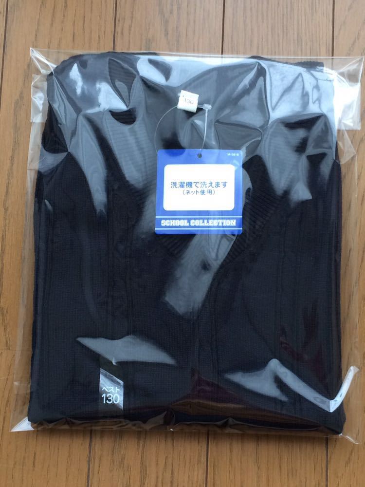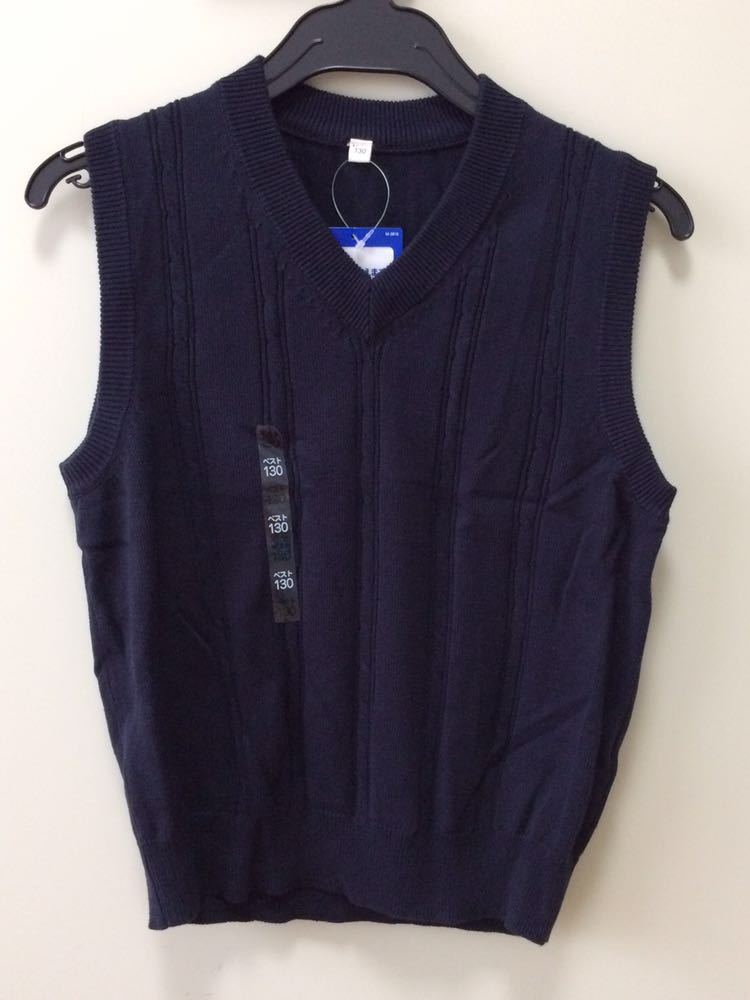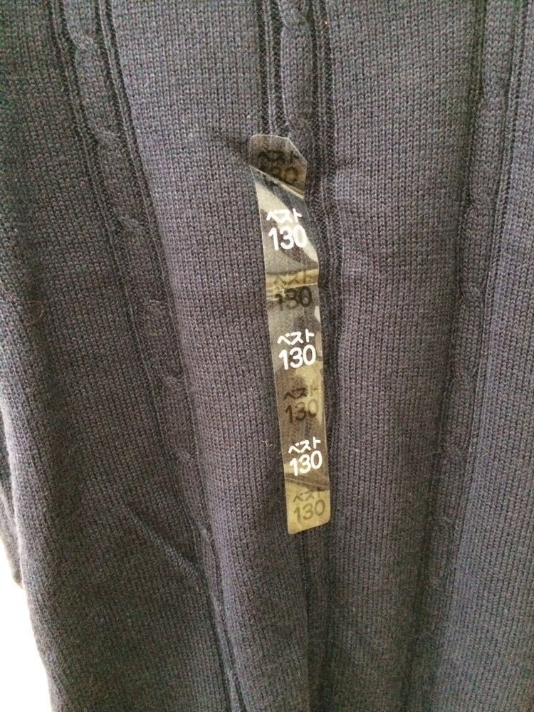 未使用 ★ 制服 ニット ベスト 130センチ 模様編み スクールセーター 濃紺。タグ切れ未使用品。サイズ約31×39×49センチ。
