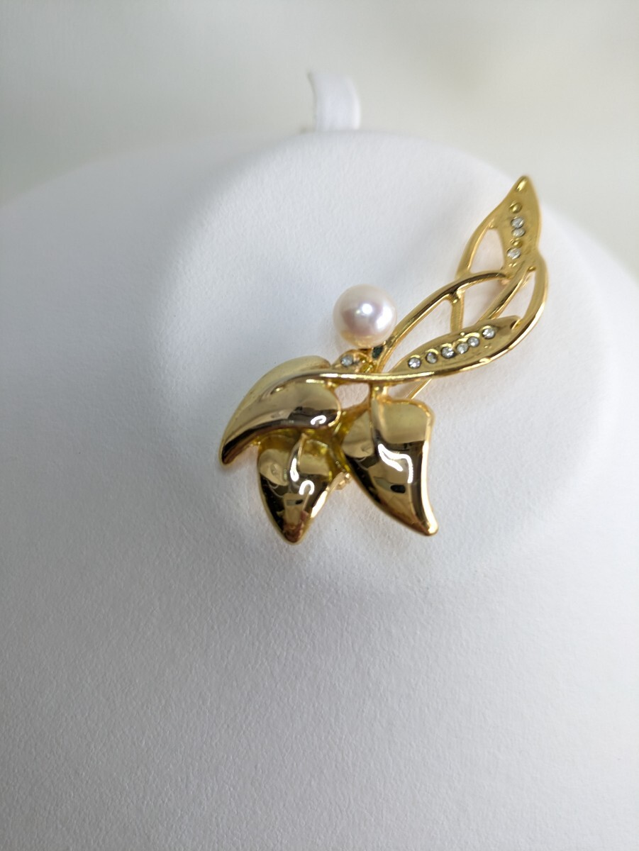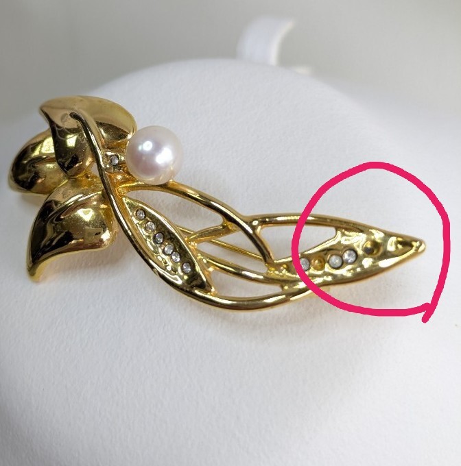 粒も大きく艶テリも非常に良い商品です。自然のものですので凹凸やキズはございませんがほぼ気にならないかと思います。画面で確認していただけますがストーンが2箇所ございません。デザインなのか不良か不明です。真珠下の金具部分錆び?で緑になっている箇所がございます。ご理解の上ご購入下さいませ。