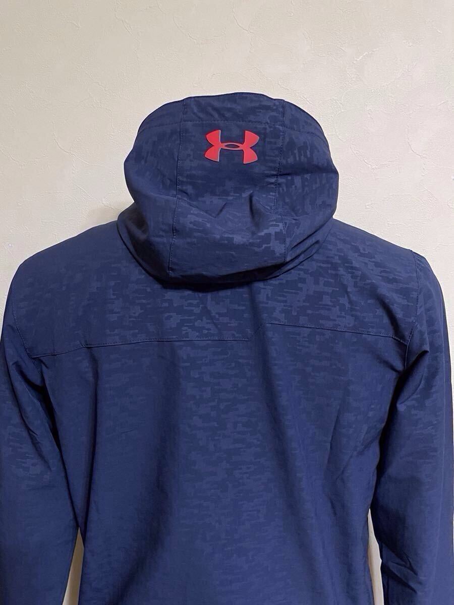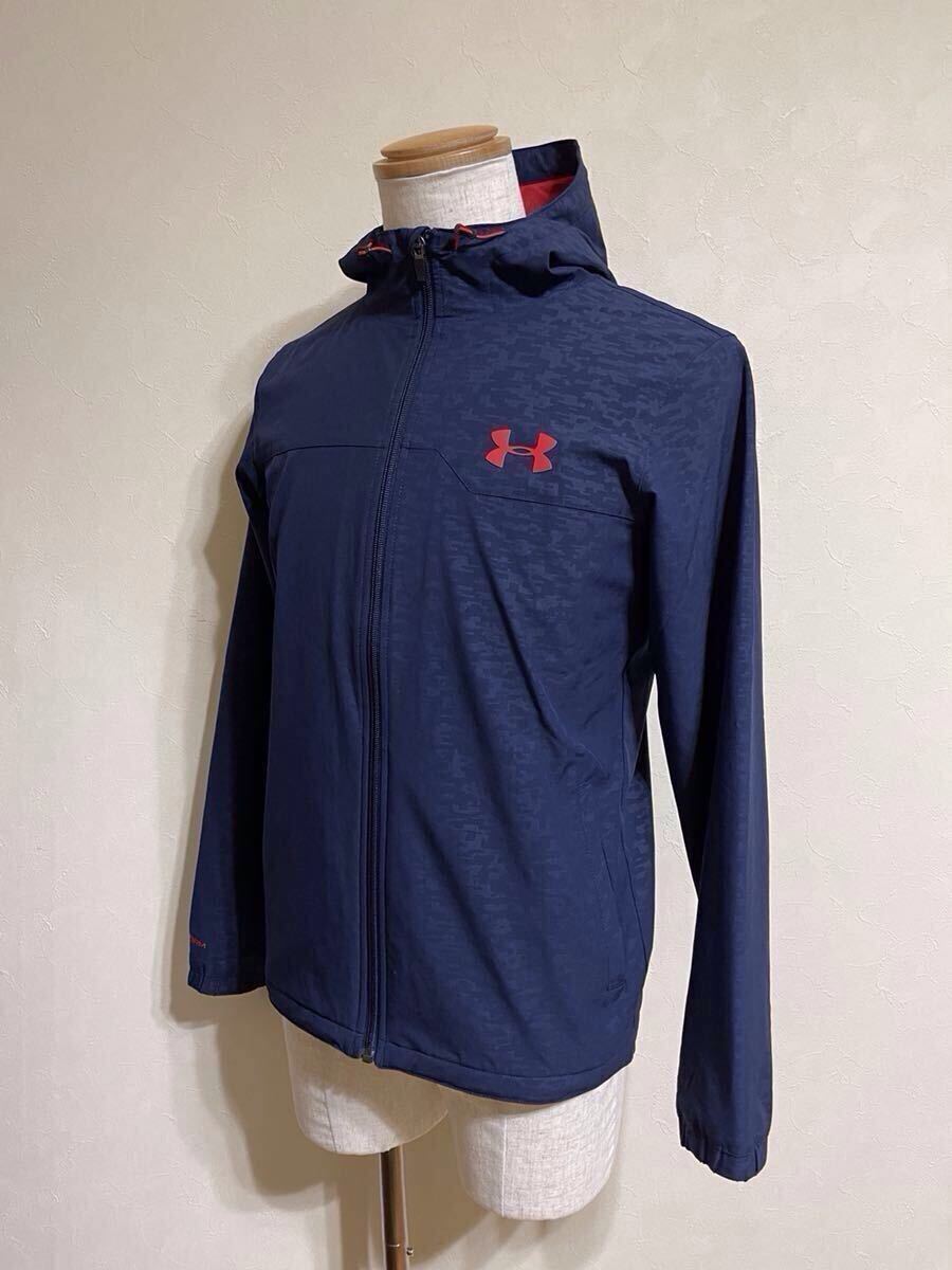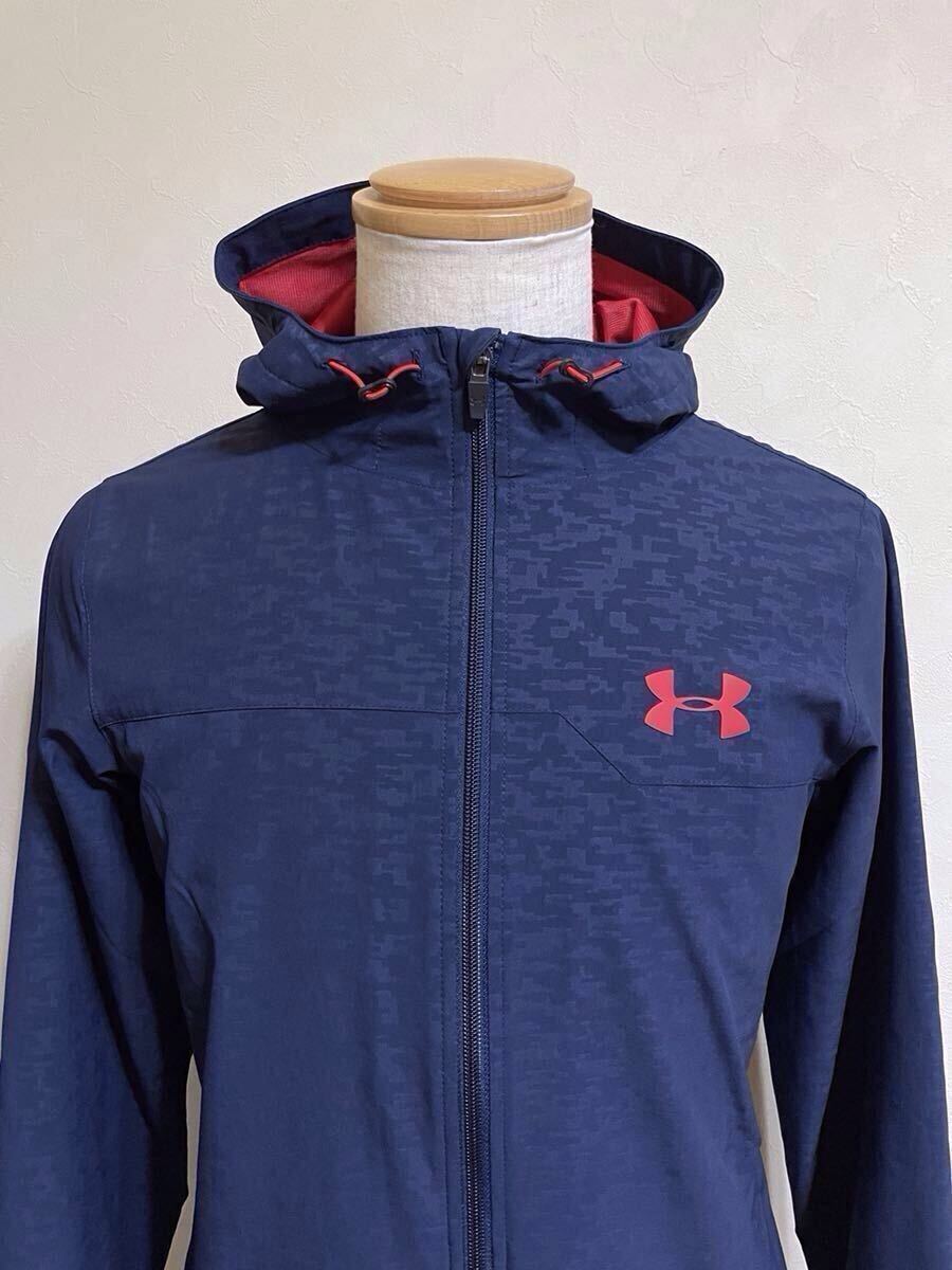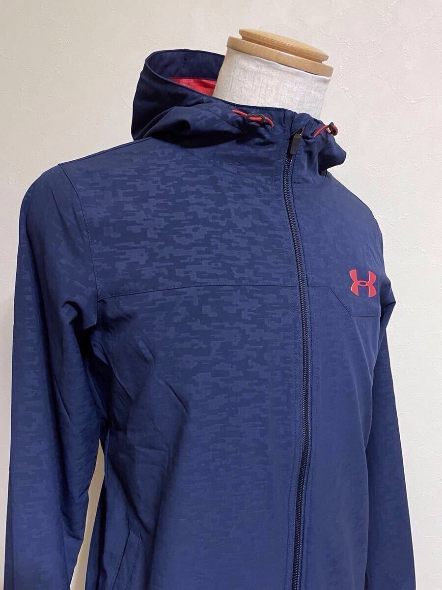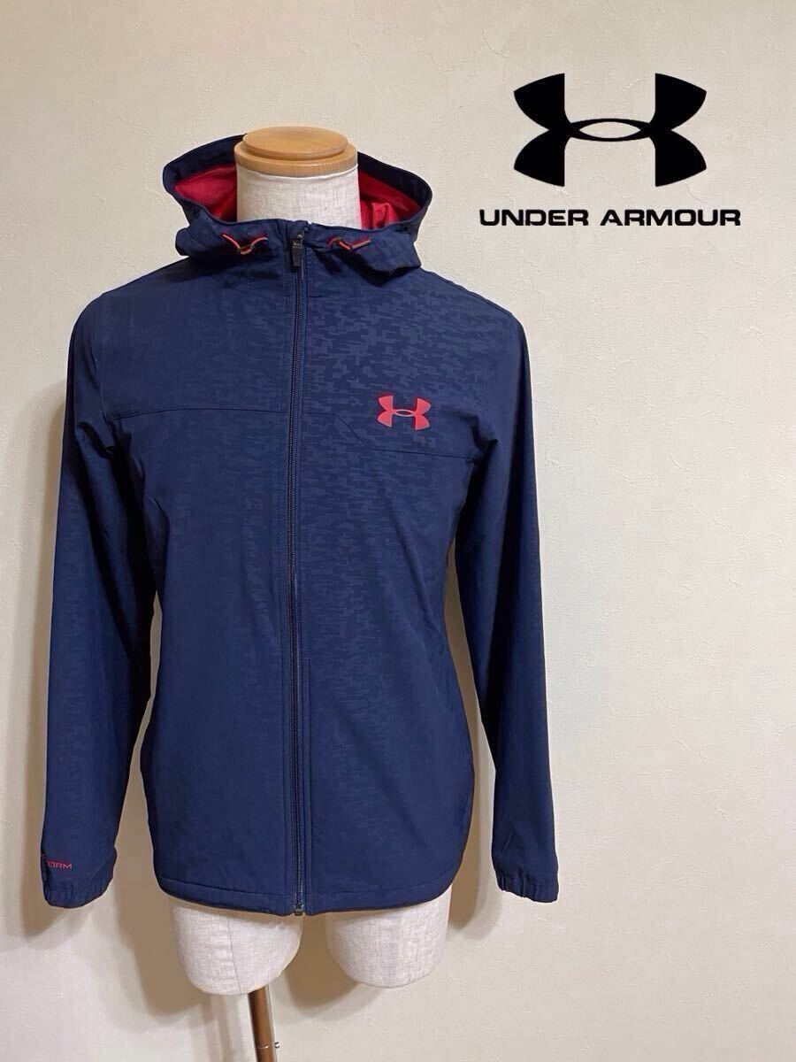【良品】 UNDER ARMOUR UA CG アンダーアーマー ジップパーカー ウインド ジャケット フーディ サイズS ネイビー 長袖 総柄 165/88A 裏起毛