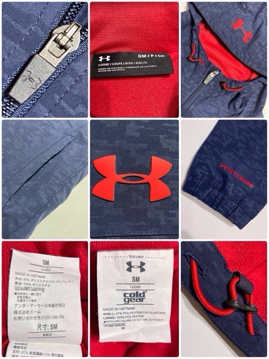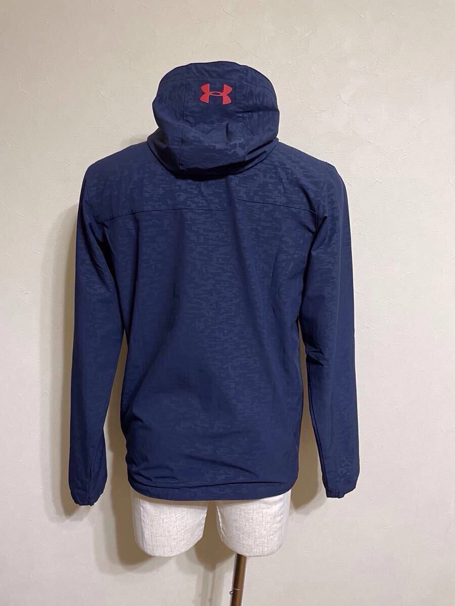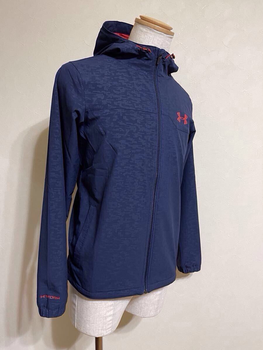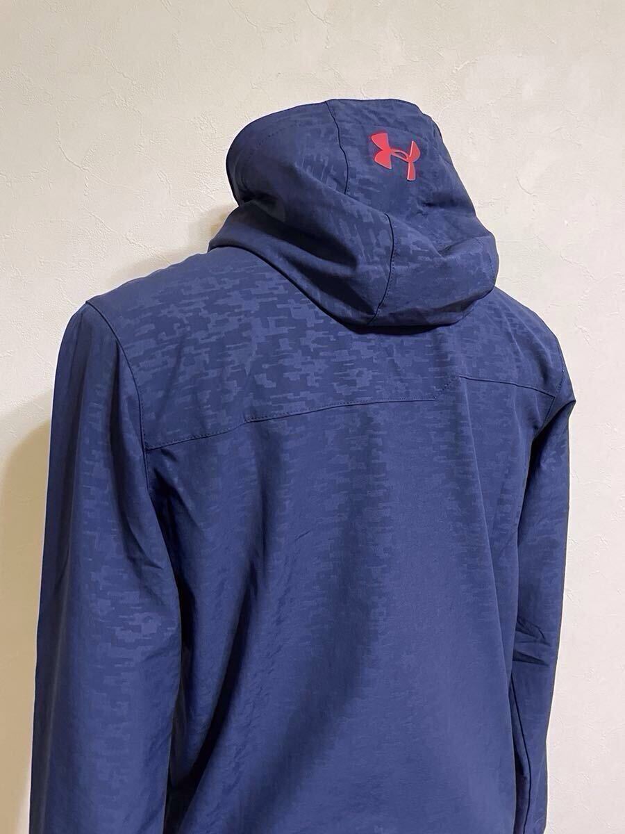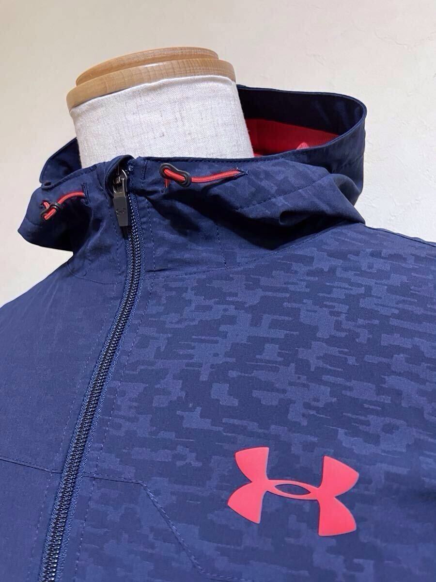 【良品】 UNDER ARMOUR UA CG アンダーアーマー ジップパーカー ウインド ジャケット フーディ サイズS ネイビー 長袖 総柄 165/88A 裏起毛