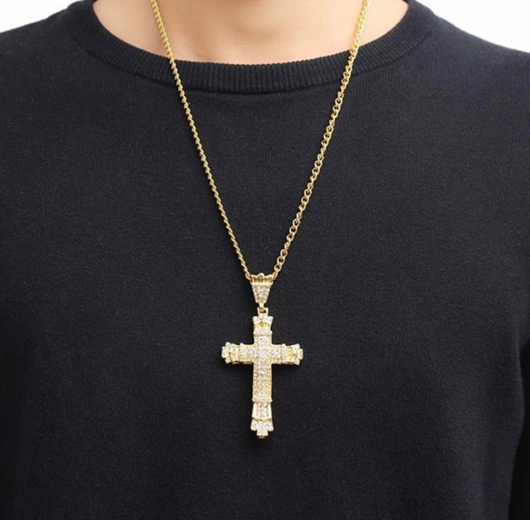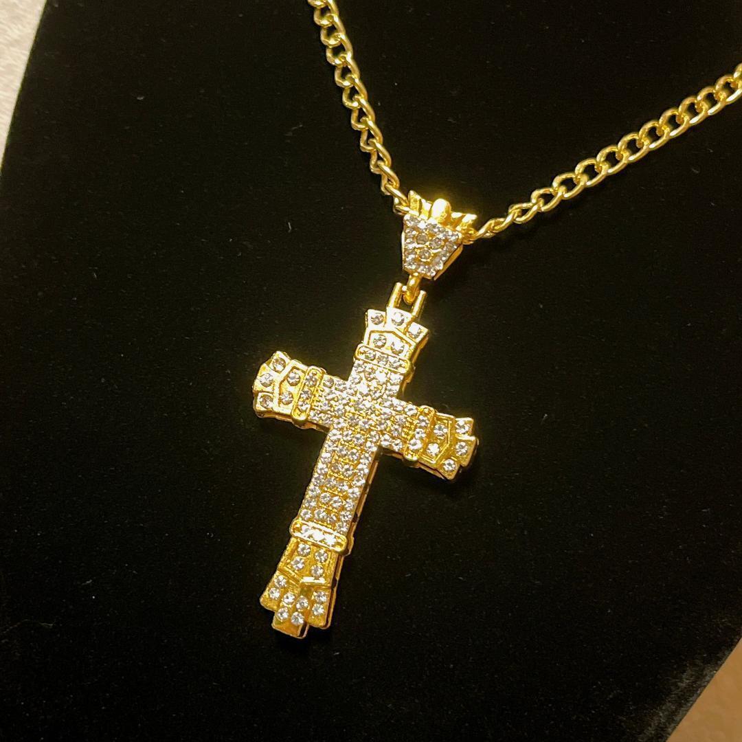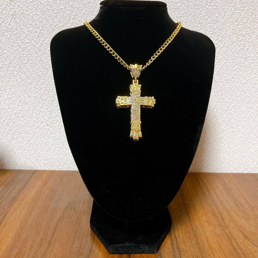 ジルコニアクロスネックレス ゴールド 十字架 無骨