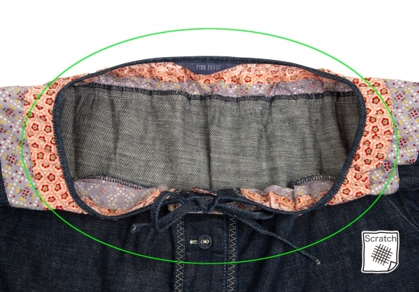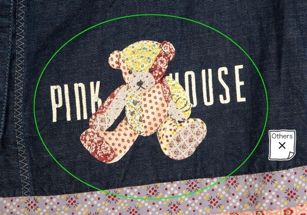 | ピンクハウスPINK HOUSE ベアープリント花柄テープ切替デニムノースリーブブラウス インディゴM位 |