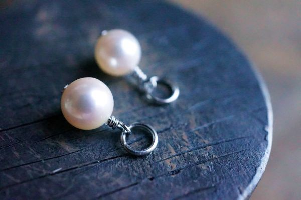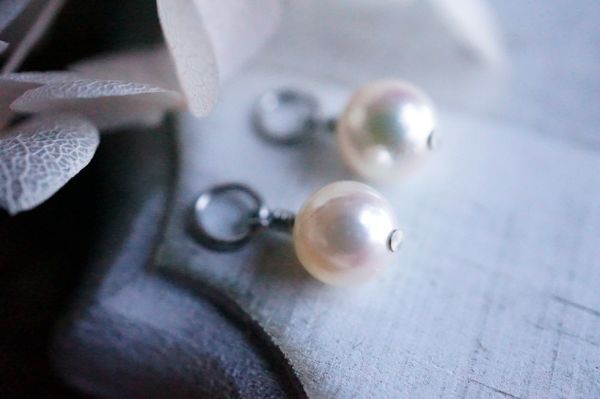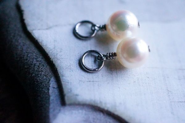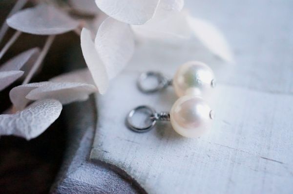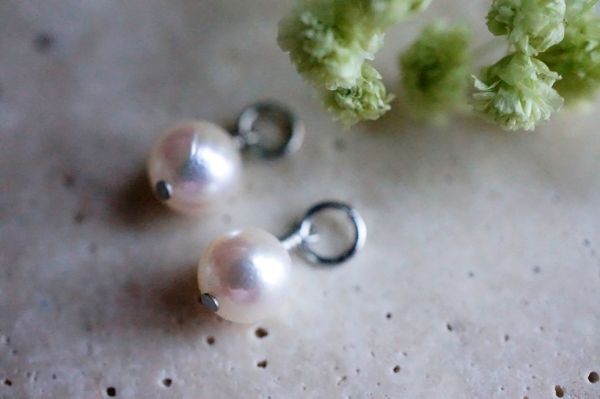 【フープ用チャーム】サージカルステンレス 193 あこや真珠 1ペア 金属アレルギー対応金具使用 ピアスチャーム