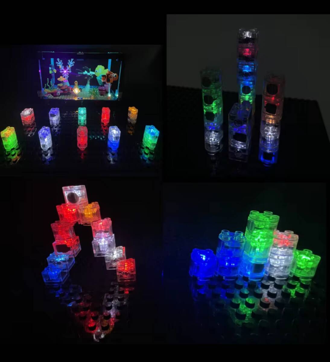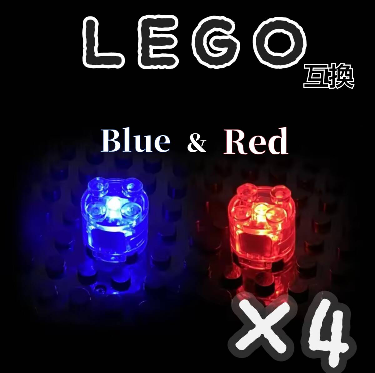 LEDライトブロック 円形 匿名配送 赤青 4個 LEGO互換 レゴ インテリア イルミネーション 送料無料 blue red ブルー レッド