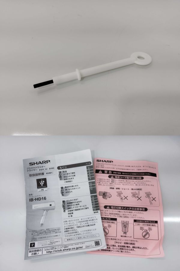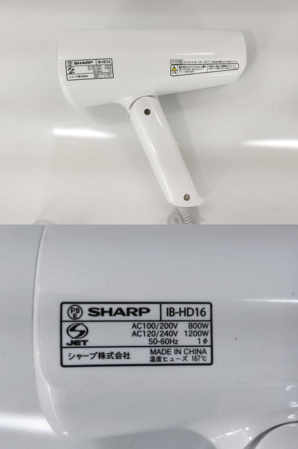 サ/ SHARP シャープ ドライヤー IB-HD16 プラズマクラスター 2016年製 ホワイト 白 /HY-0702