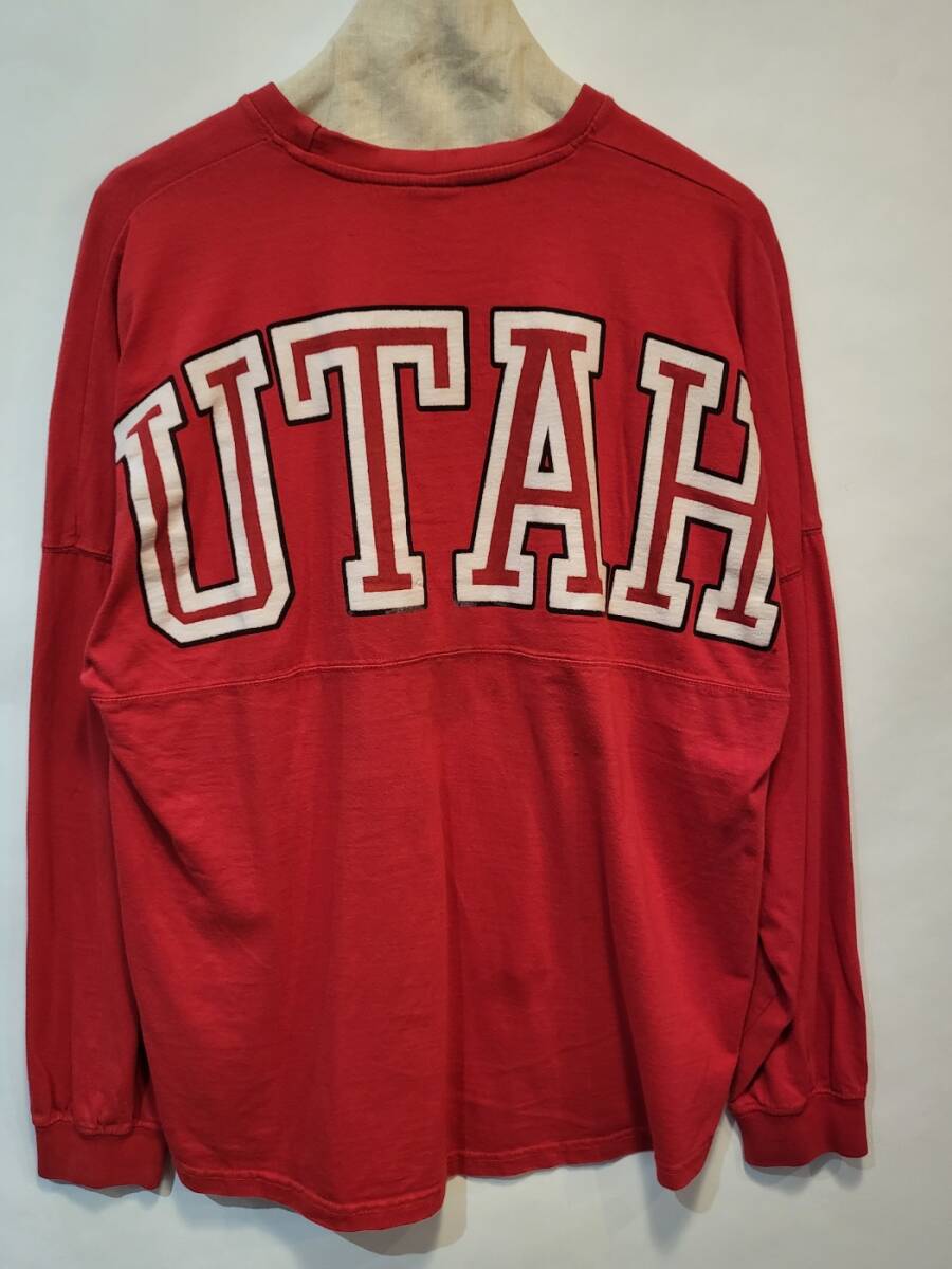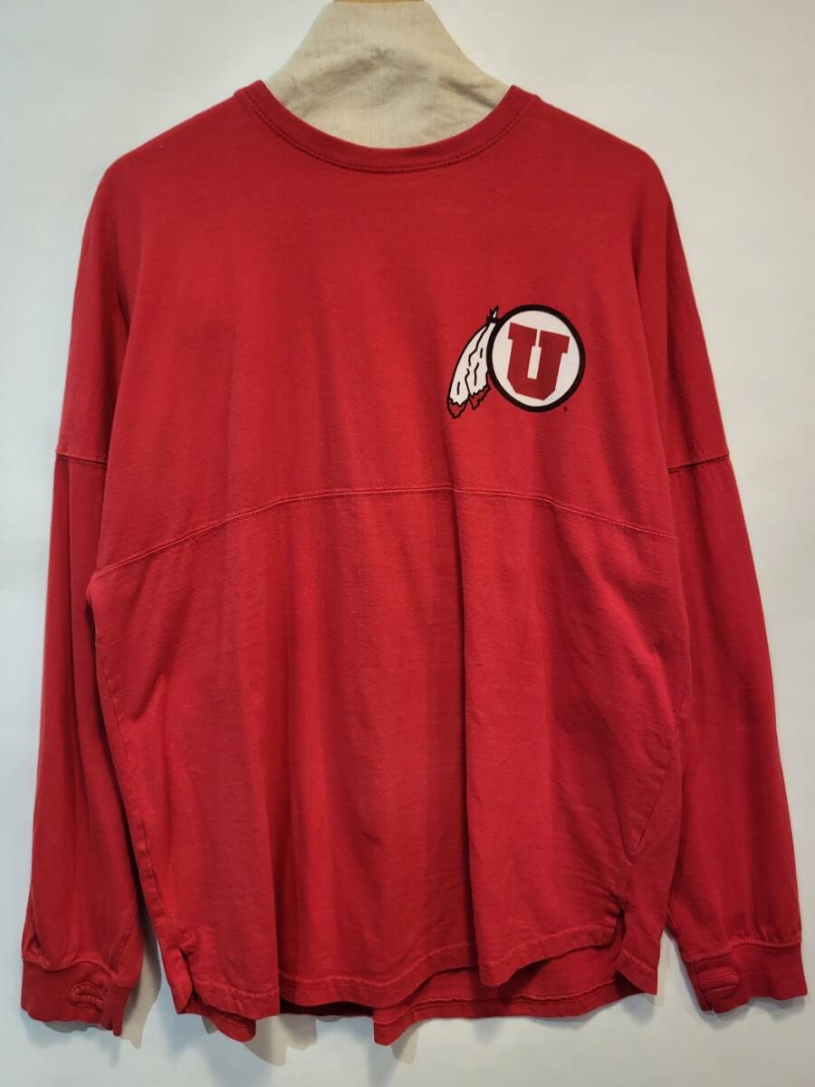 ユタ大学のロゴと羽根のモチーフがデザインされた、赤い長袖Tシャツです。ユタ大学のファンにはもちろん、普段使いにもおすすめです。■ 商品サイズ(平置き採寸 cm)着丈 71