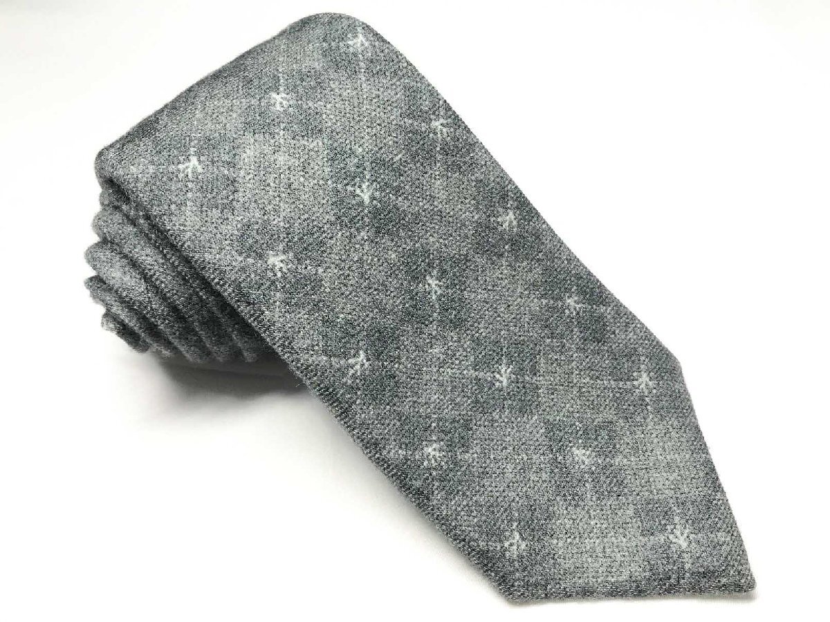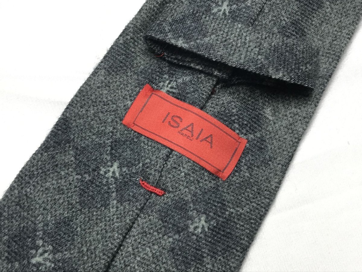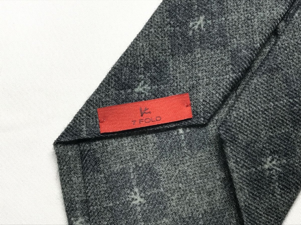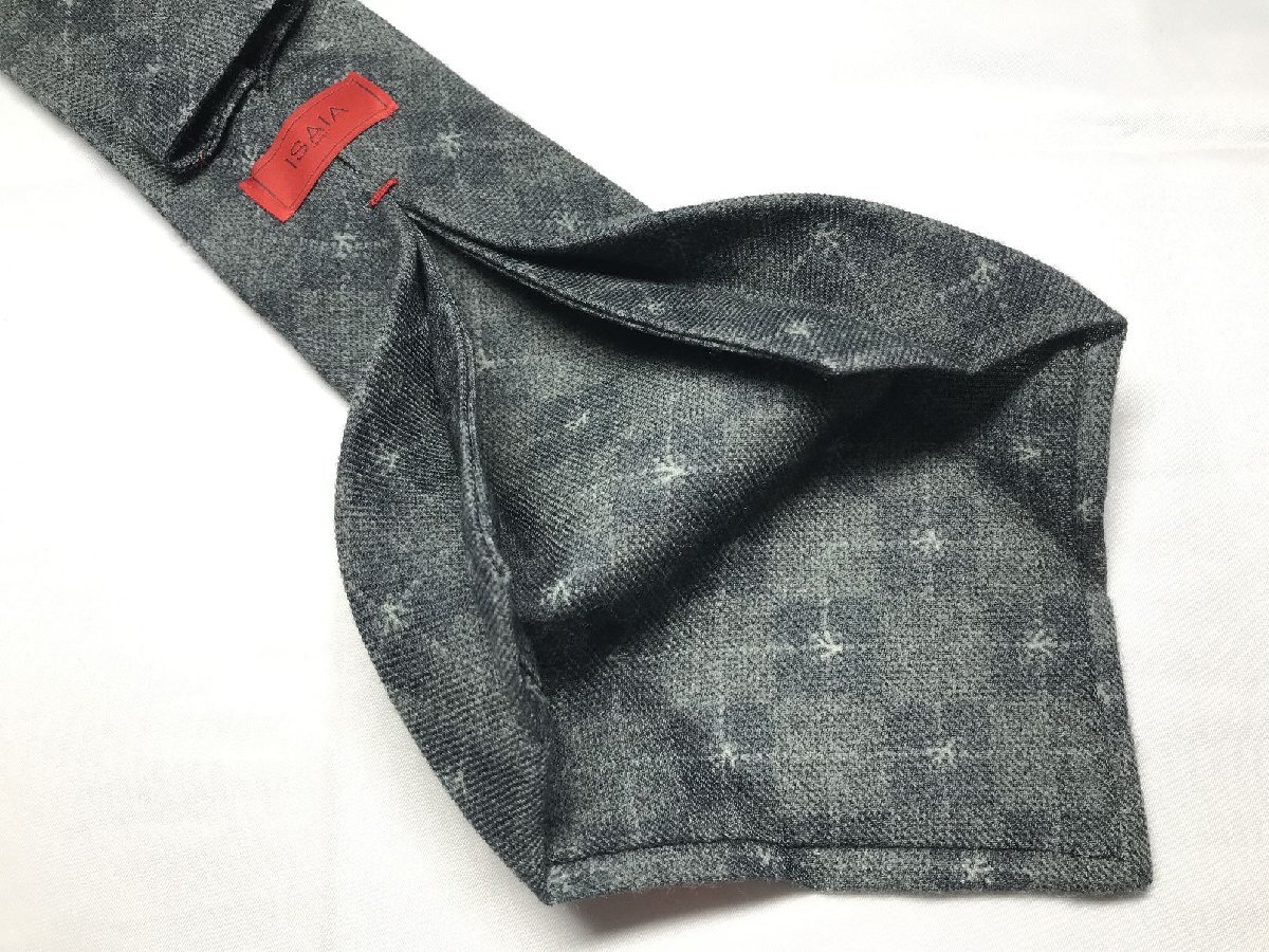 HH美品 【イザイア ISAIA】 7FOLD セッテピエゲ 格子 小紋柄 ウール ネクタイ (メンズ) グレー系 ◯27KSM1696