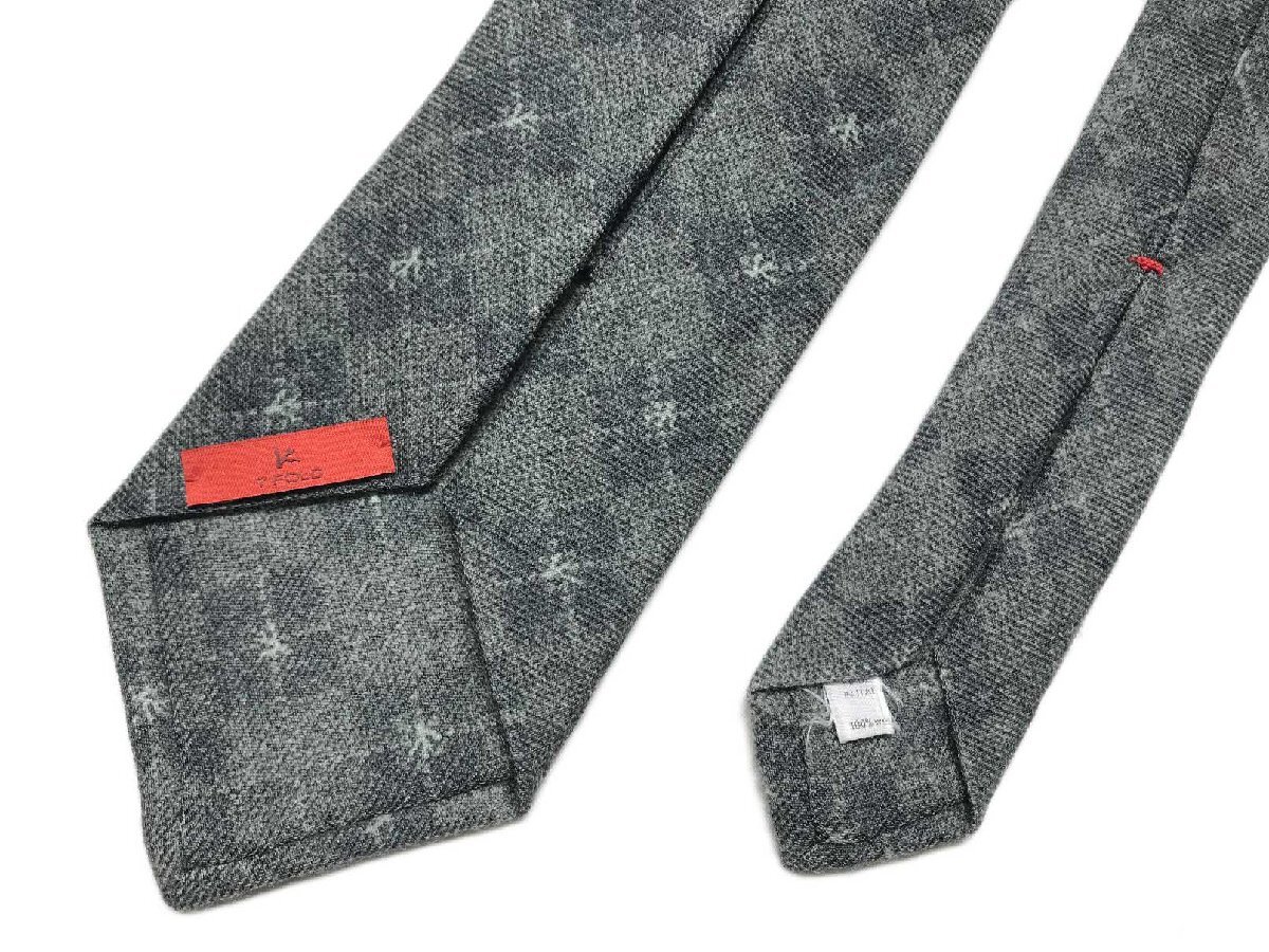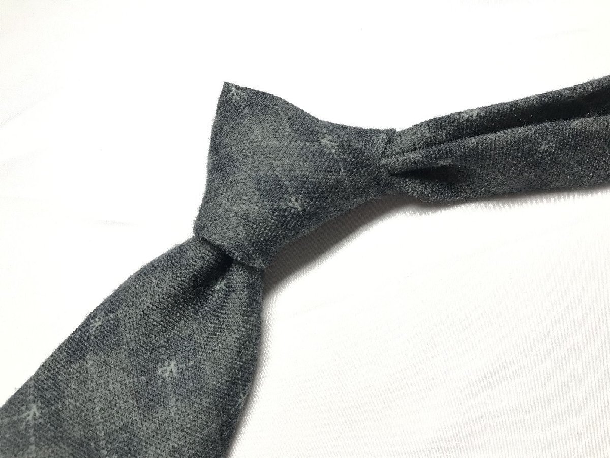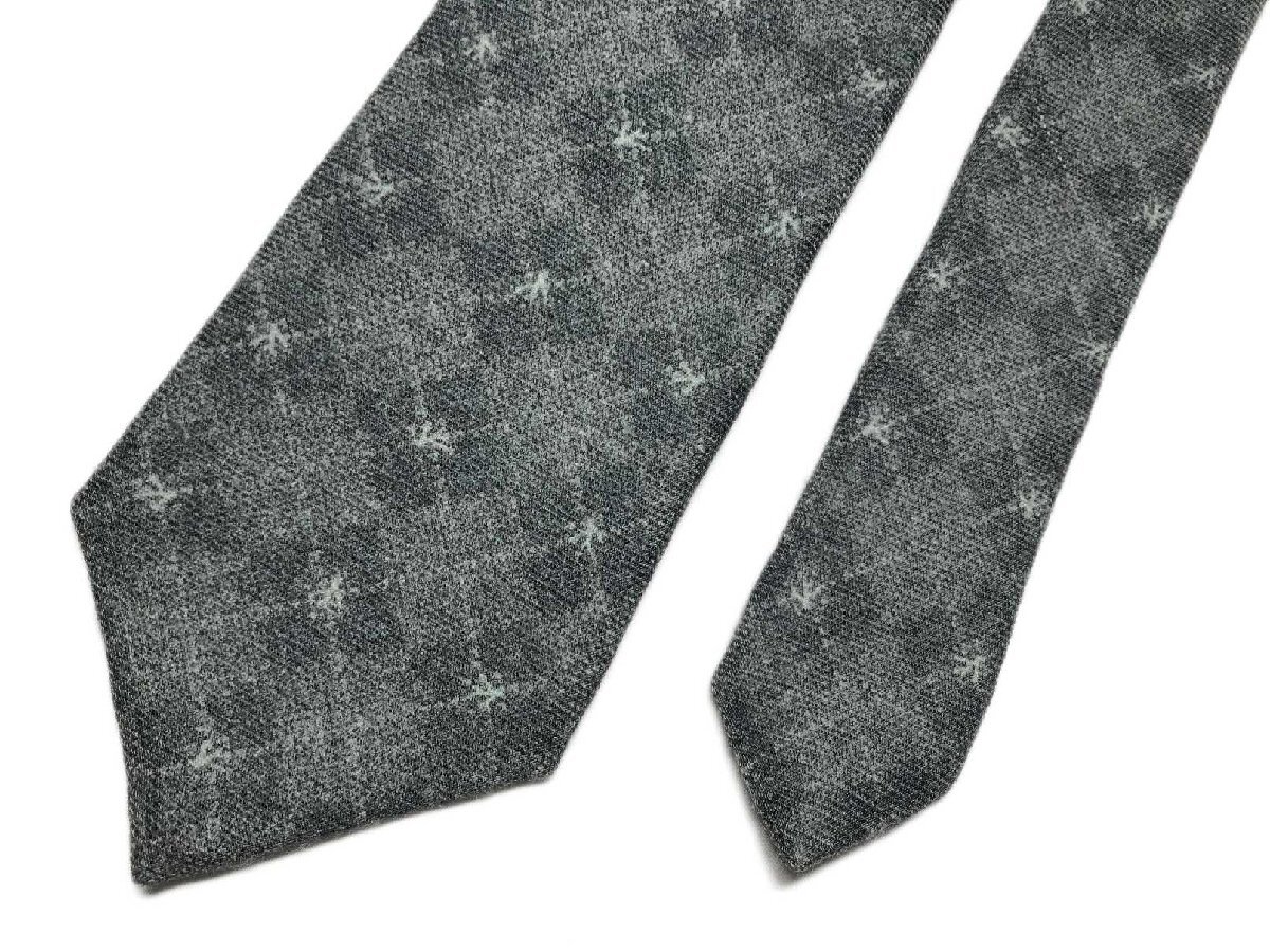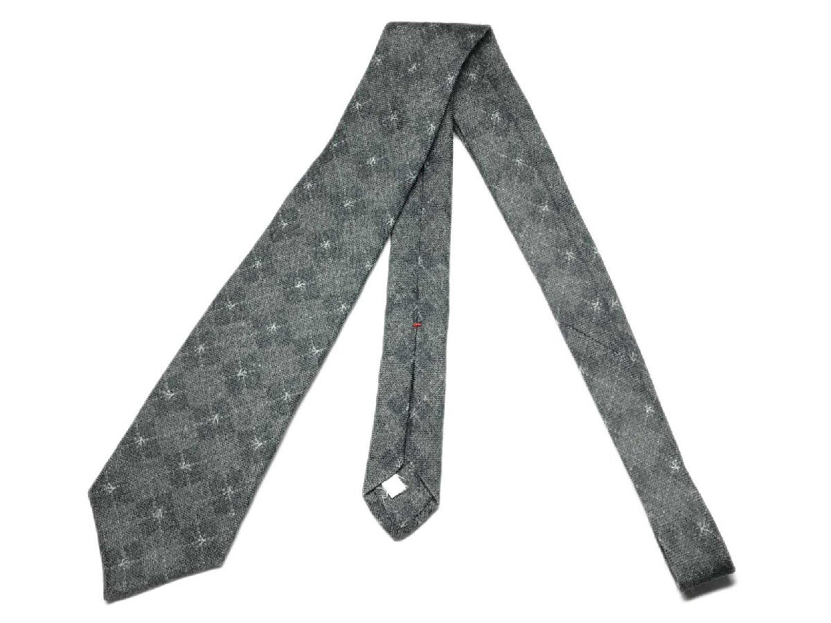 HH美品 【イザイア ISAIA】 7FOLD セッテピエゲ 格子 小紋柄 ウール ネクタイ (メンズ) グレー系 ◯27KSM1696