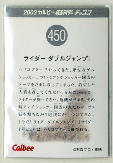 | ◆防水対策 厚紙補強 カルビー 仮面ライダーチップスカード(2003 復刻版) 450番 ライダー ダブルジャンプ! トレカ 即決 | |