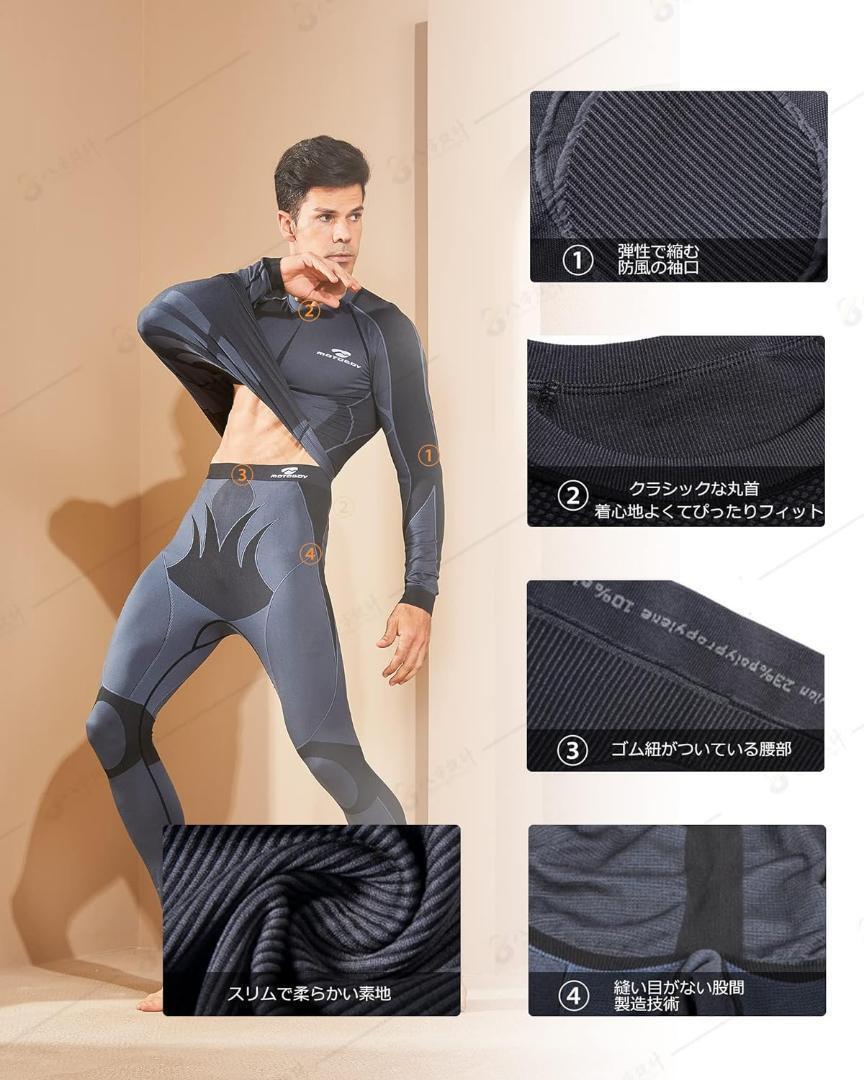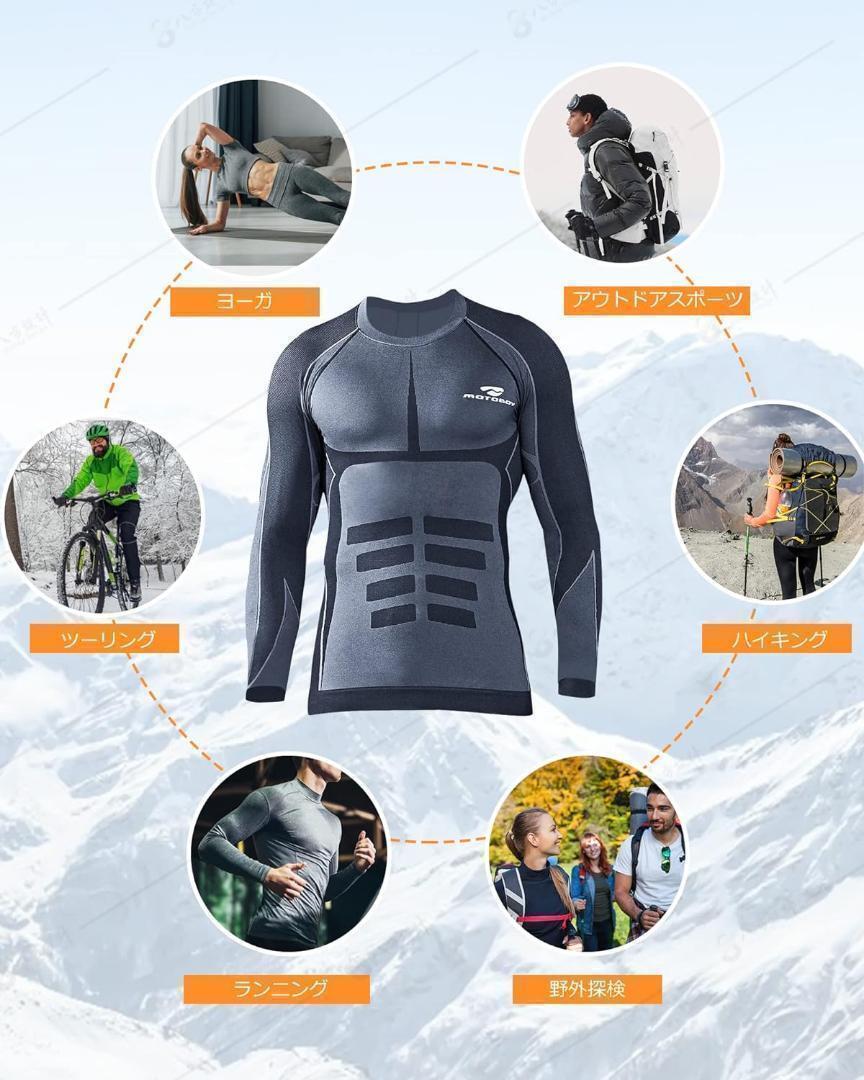 【快適さを保つ】本メンズコンプレッションウェアは長袖で、伸縮、締め付け感がちょうどよくて、縫い目のないデザインを使って、スムーズでシルクのような肌触りを実現する一方、体の温度を保ちます