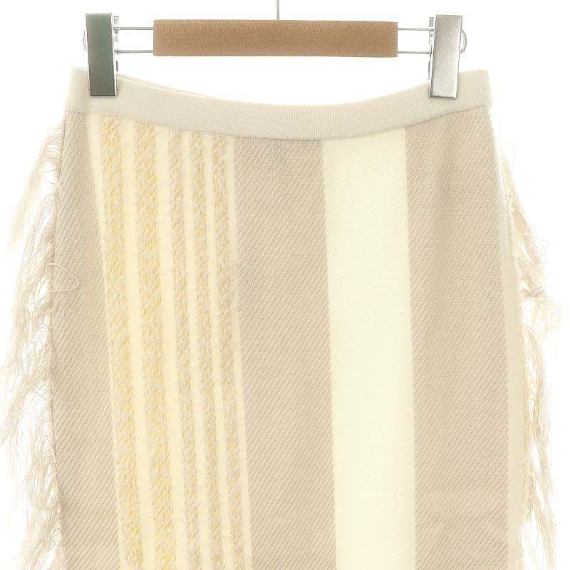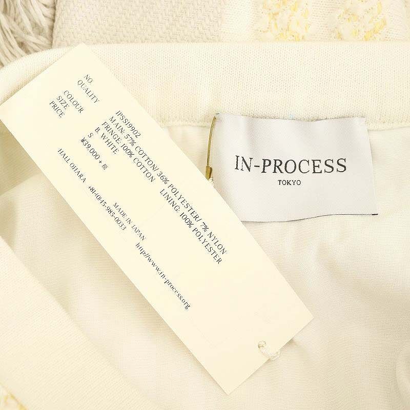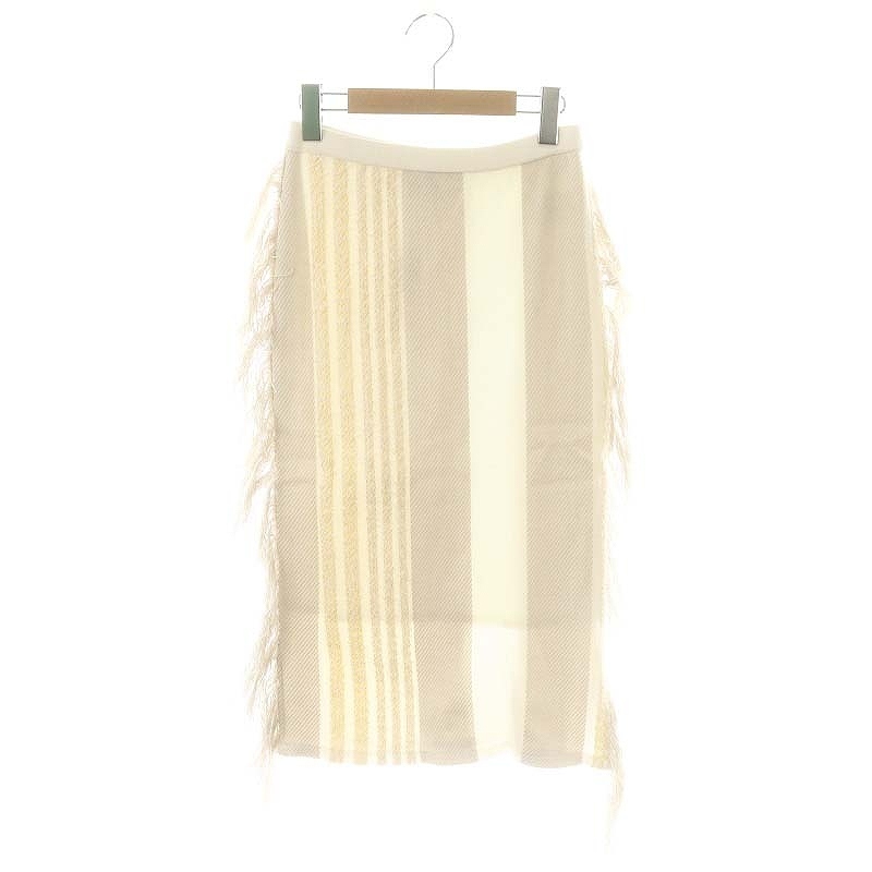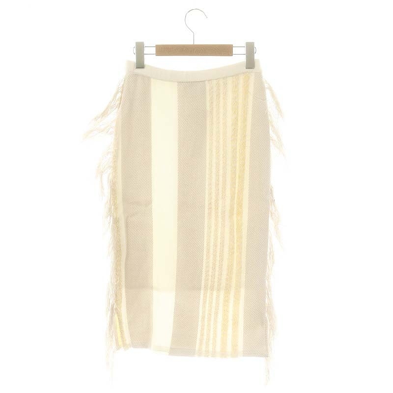 未使用品 インプロセス IN-PROCESS フリンジスカート ニット ロング タイト S オフホワイト マルチカラー /DO ■OS レディース