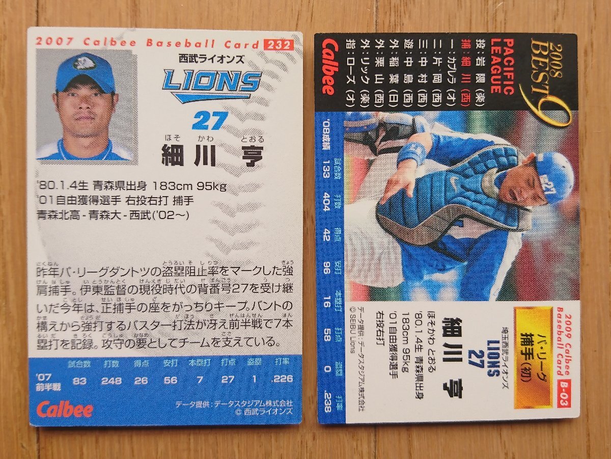 【カード・カルビー】細川亨 2007年232 / 2006年B-03 ベストナイン 計2枚セット 埼玉西武ライオンズ カルビープロ野球チップス