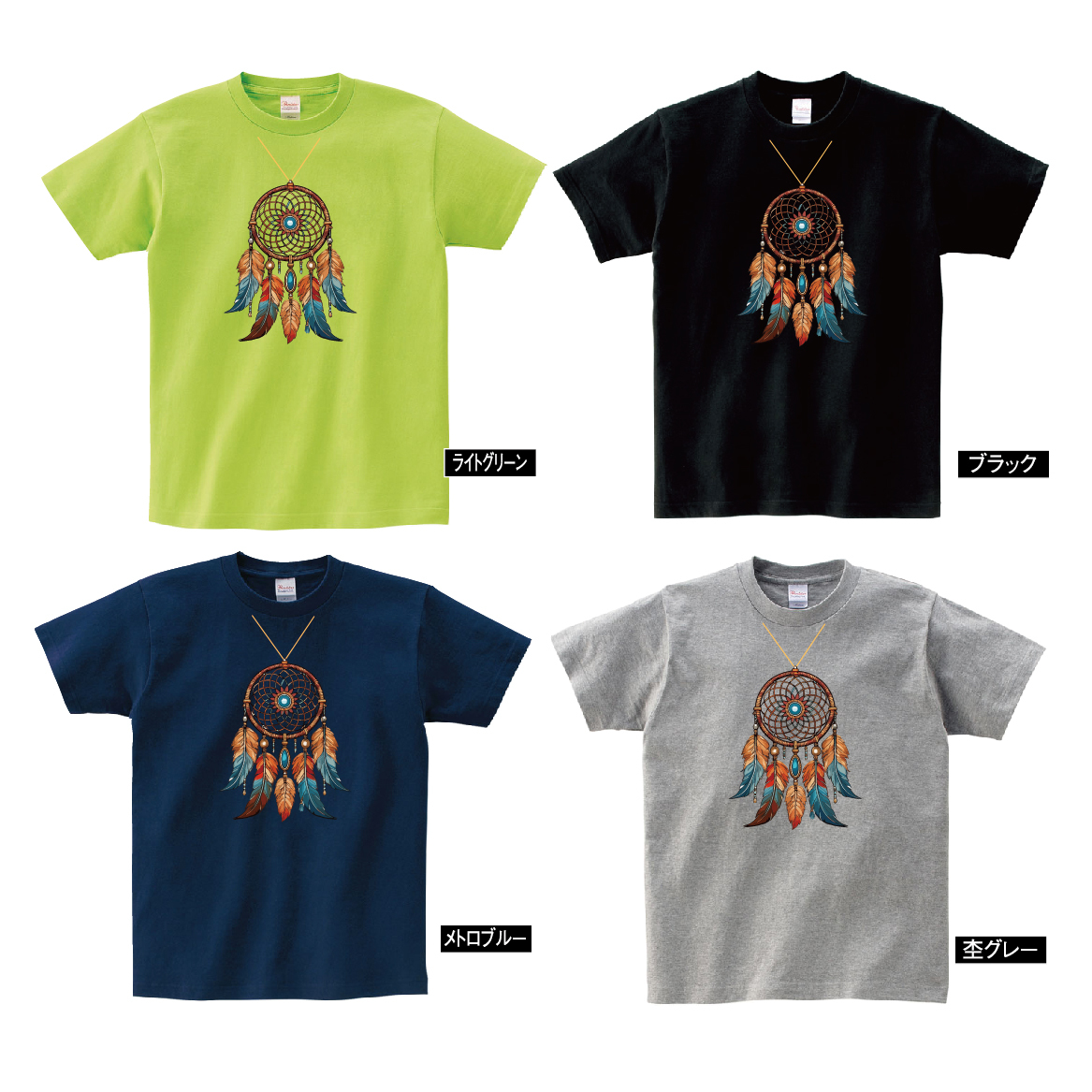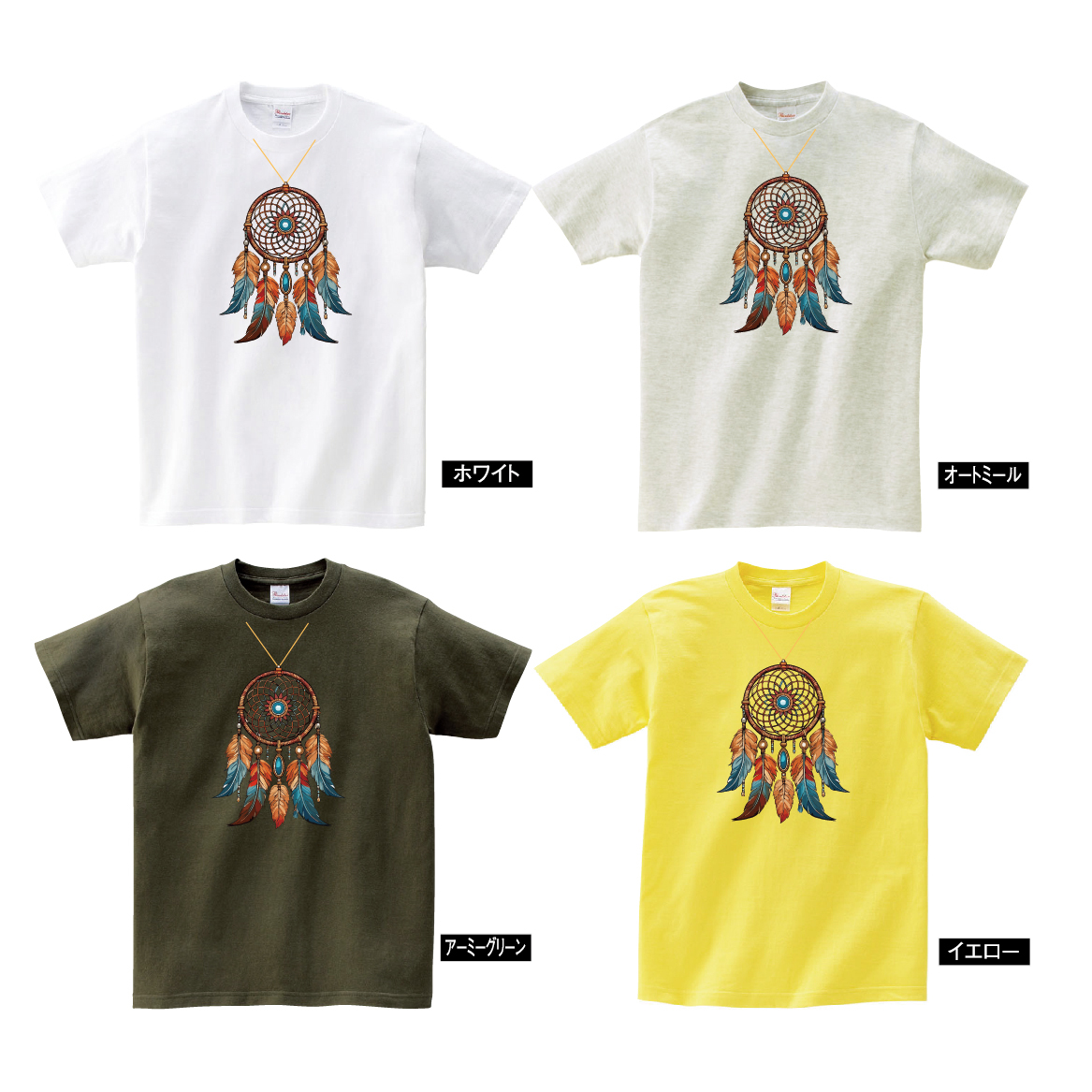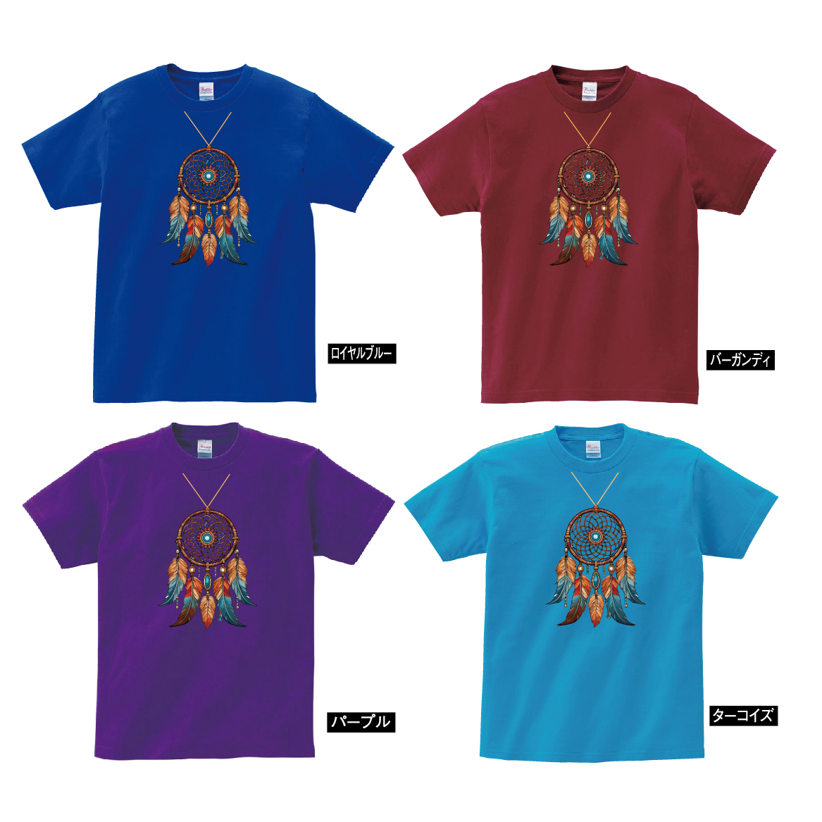 このオリジナルデザインのTシャツは、インディアンの伝統的な守護シンボルであるドリームキャッチャーをフィーチャーしています。美しいドリームキャッチャーのプリントが目を引くこのTシャツは、夢を捕らえ、悪夢を遠ざけるとされる特別な意味を持っています。豊富な12色のカラーバリエーションからお選びいただけるため、お好みやスタイルに合わせて自由に選べます。厚手の綿100%素材を使用しているため、肌触りが良く、耐久性にも優れています。カジュアルな日常着としてはもちろん、アウトドアやフェスティバルなどの特別なイベントにもピッタリです。このTシャツを着て、個性を表現しながら、守護と夢への願いを身に着けましょう。