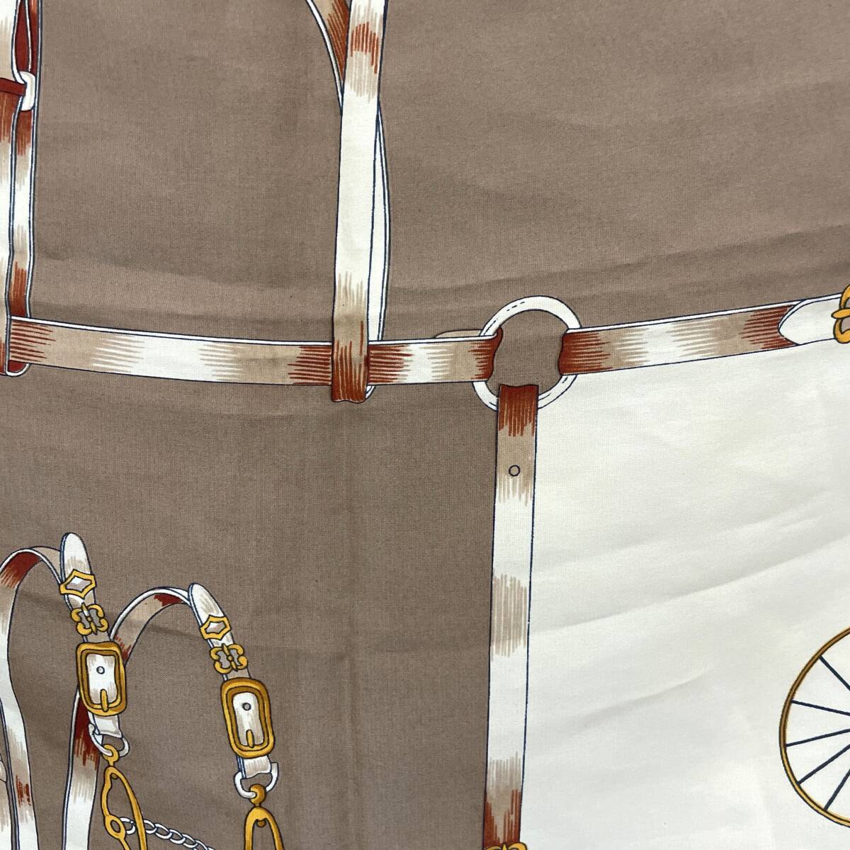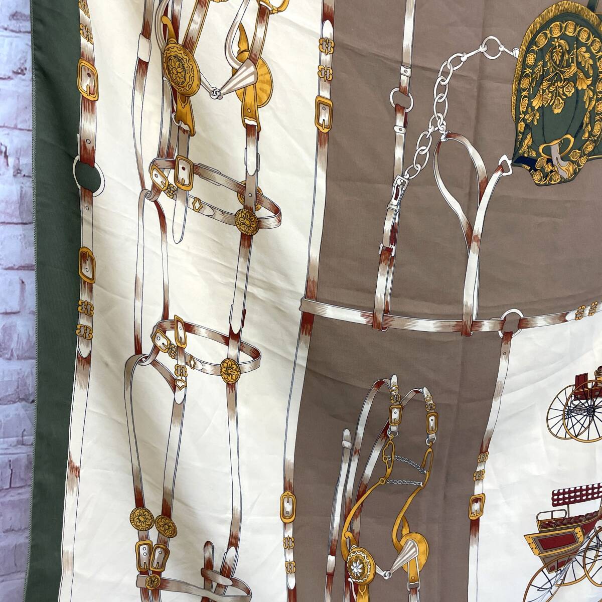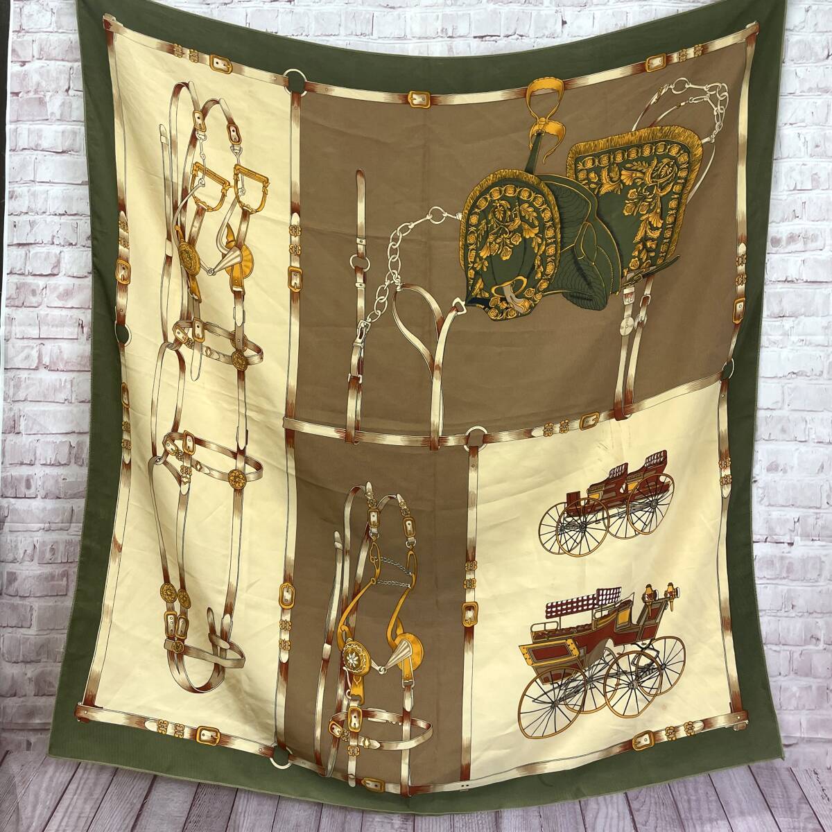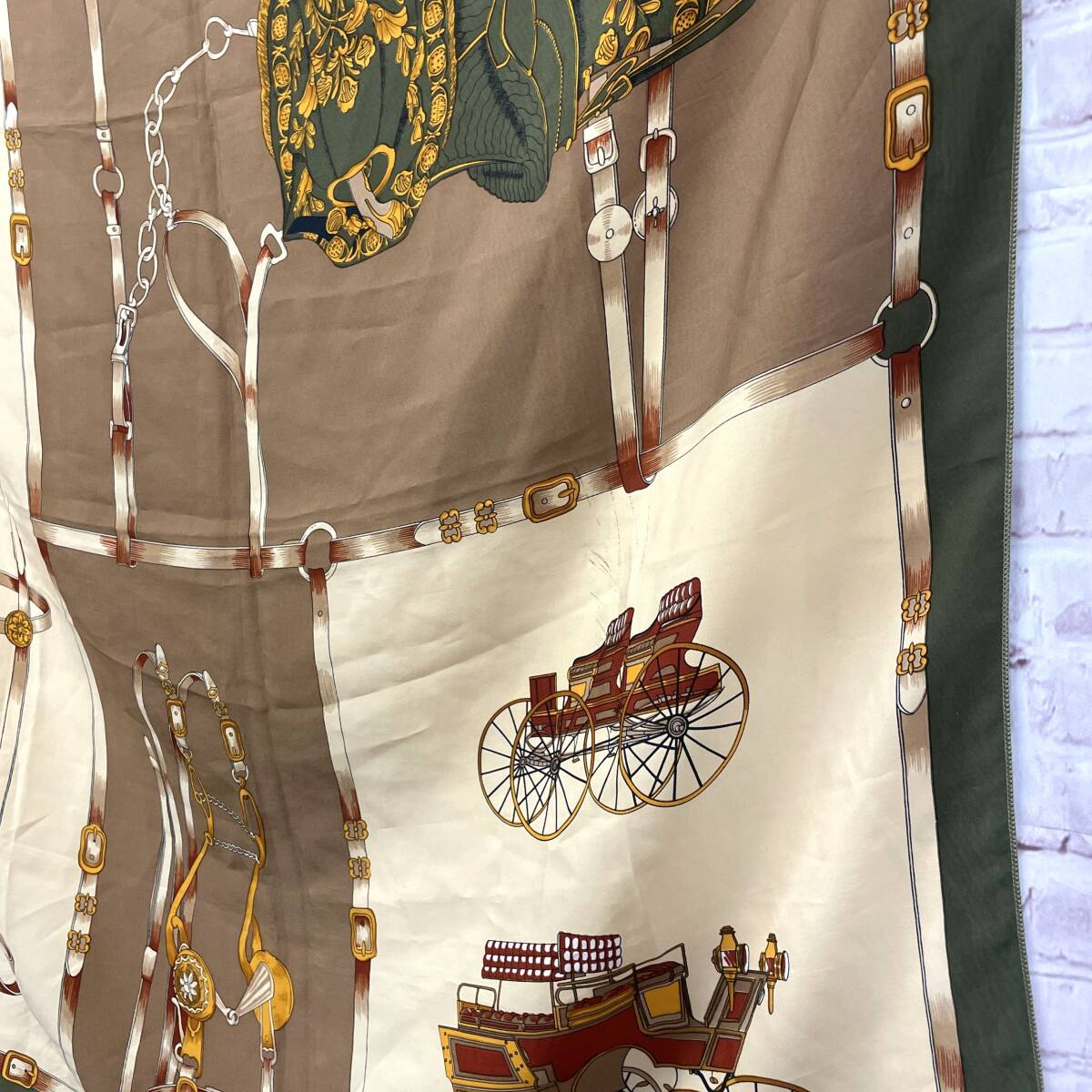 大判 スカーフ バンダナ カーキ×ブラウン 馬車 ベルト 馬具 エレガント ラグジュアリー 82×86