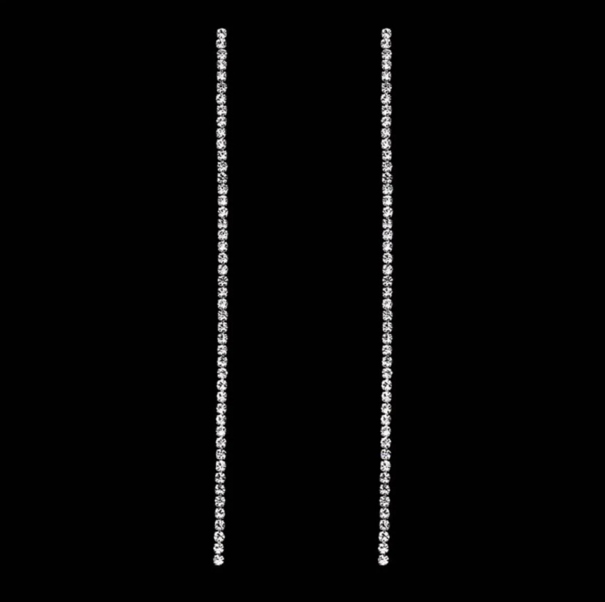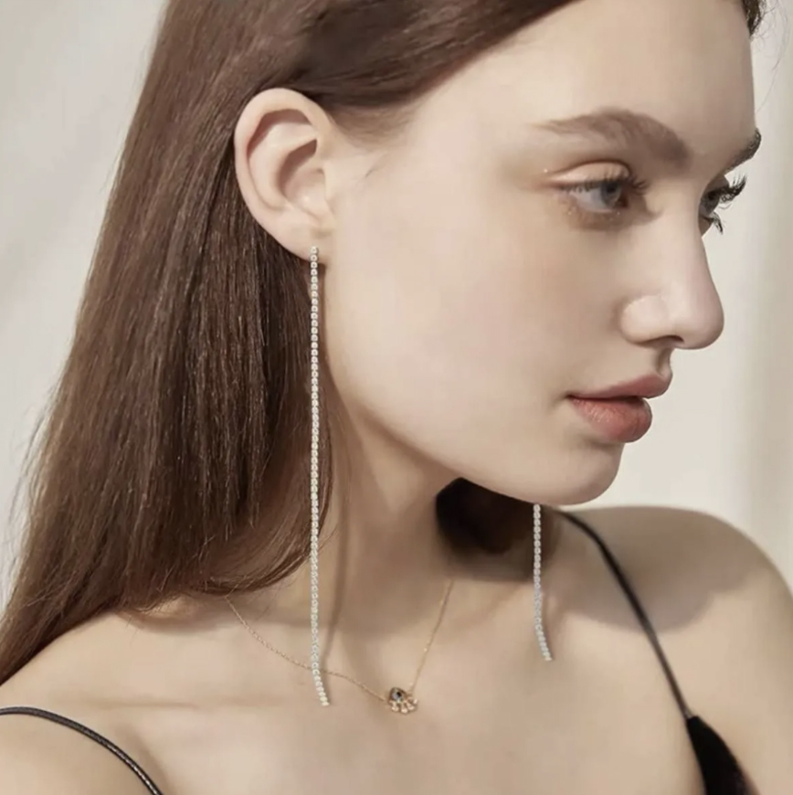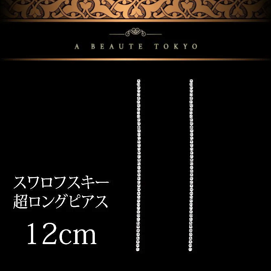 スワロフスキーの超ロングピアスです。揺れるたびにクリスタルがキラキラと眩しく輝きます。