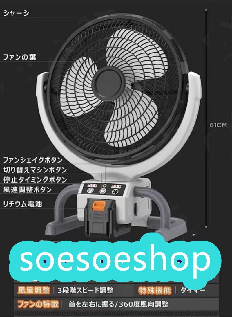 充電式産業扇 工場扇 据置き 床置風洞扇 強力 コードレス 大型扇風機 61cm 3枚羽根 風量3段階調節 タイマー付き 屋外熱中症対策
