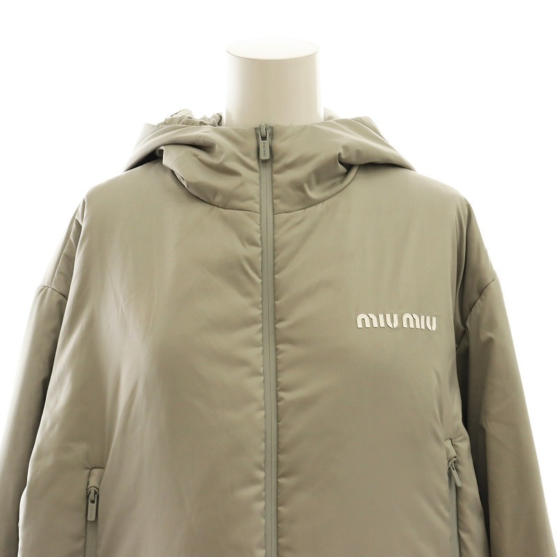 ミュウミュウ miumiu 24AW テクニカルポンジー ジャケット フード付き ダウン ロゴ XS ライトグレー ML1156 /AQ ■OS ■SH レディース