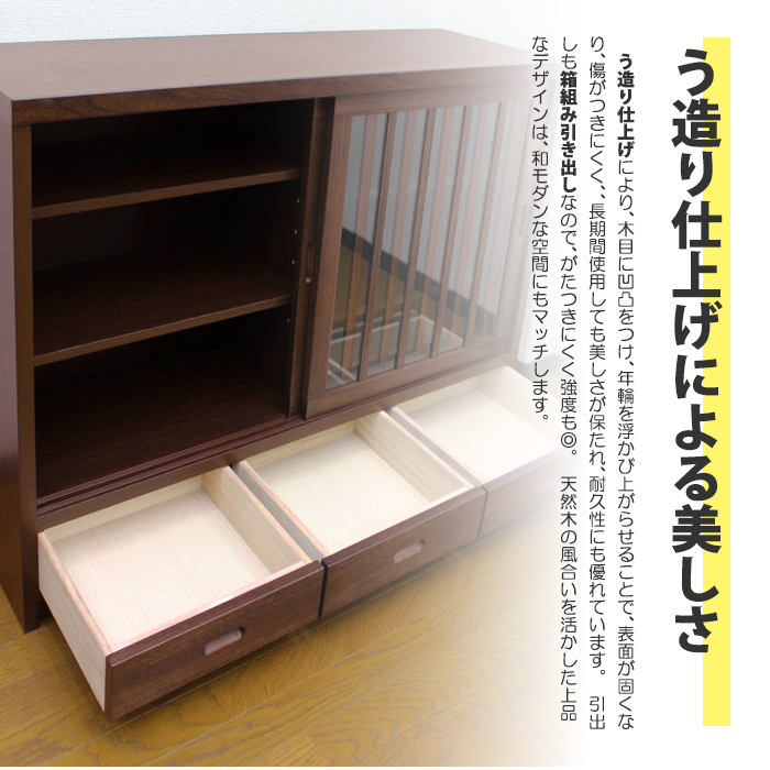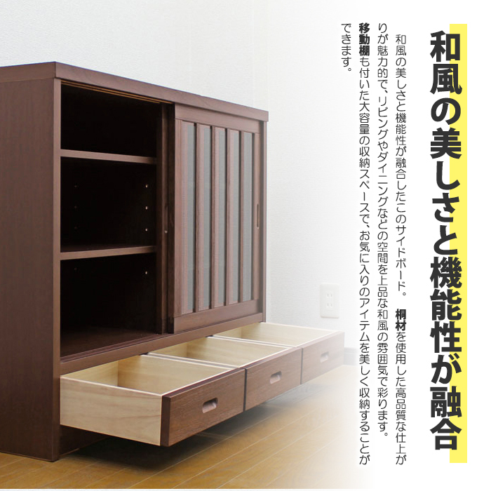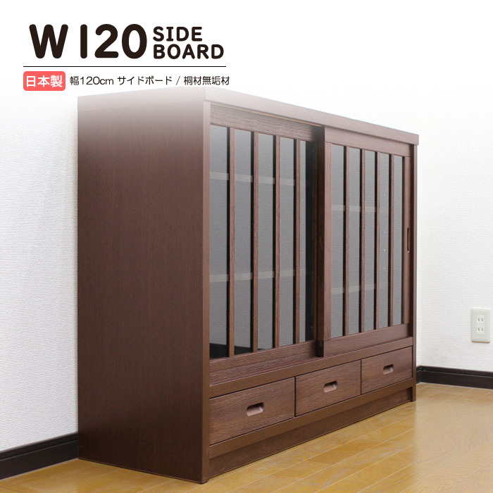 サイドボード キャビネット 和モダン 完成品 幅120cm 引き戸 リビング収納 ガラス扉 木製