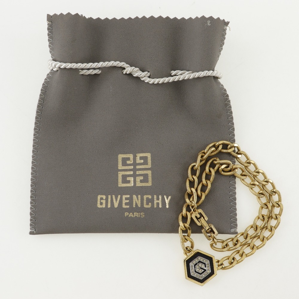 Givenchy ジバンシー Gロゴ ネックレス 金メッキ×ラインストーン 黒 約41.2g レディース【H113125209】中古