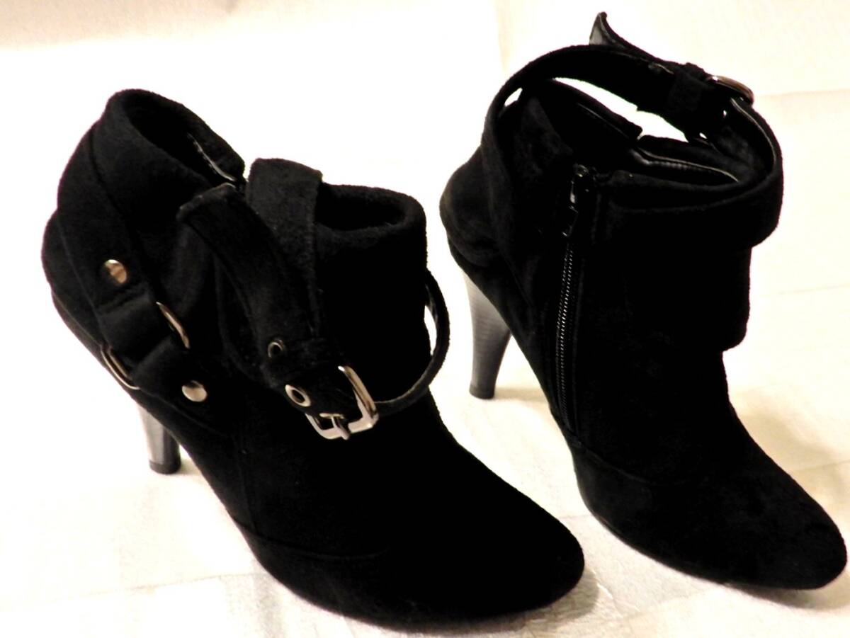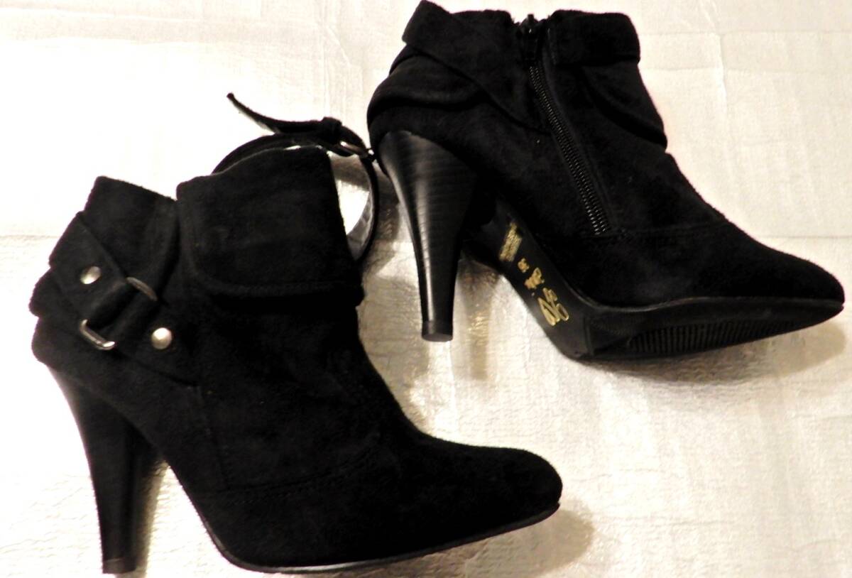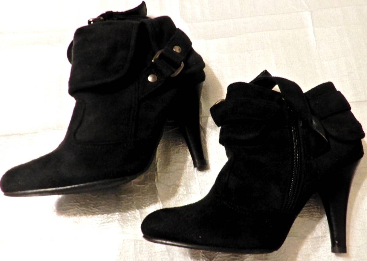 BABY PURE ベイビーピュア スエード ショート ブーツ パンプス 黒 ブラック シューズ 靴 サイズ36 22.5cm~23.0cm程度 ヒール 8cm