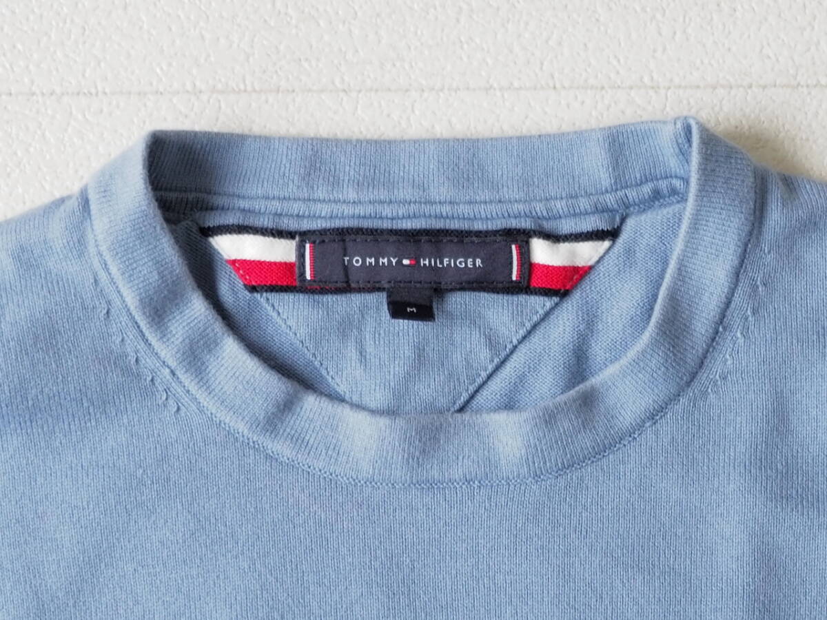 ☆送料無料☆ TOMMY HILFIGER トミーヒルフィガー USA直輸入 古着 ロゴ ニット プルオーバー メンズ M サックスブルー トップス 中古 即決
