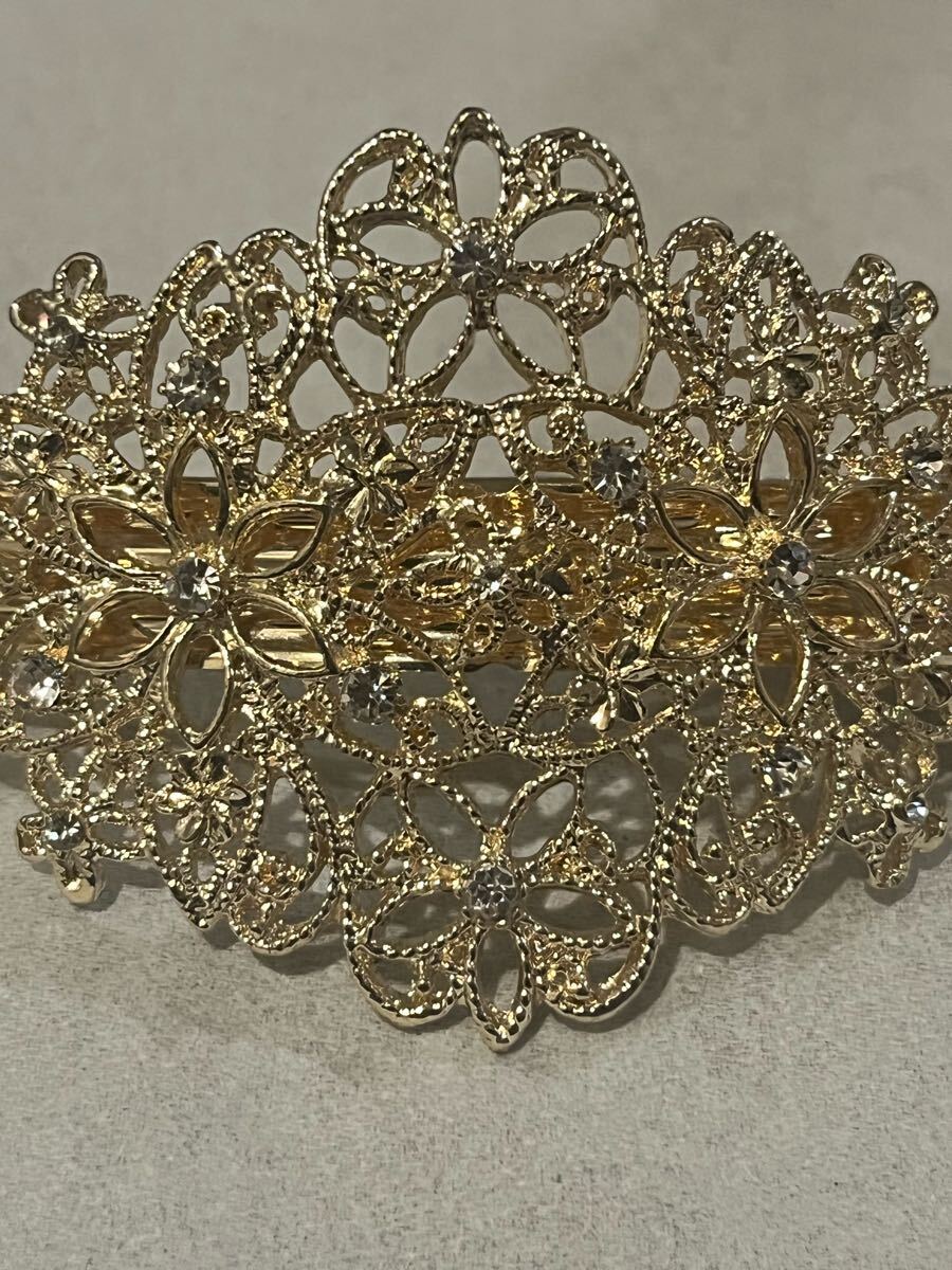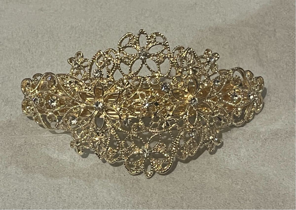 バレッタ ゴールド フラワー
