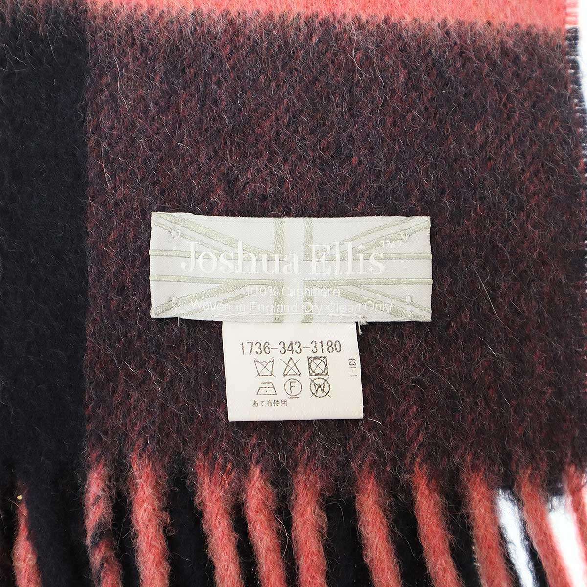 Joshua Ellis ジョシュア エリス UNITED ARROWS別注 チェック柄カシミヤフリンジマフラー 1736-343-3180 ピンク ネイビー ITAUNDEIE798