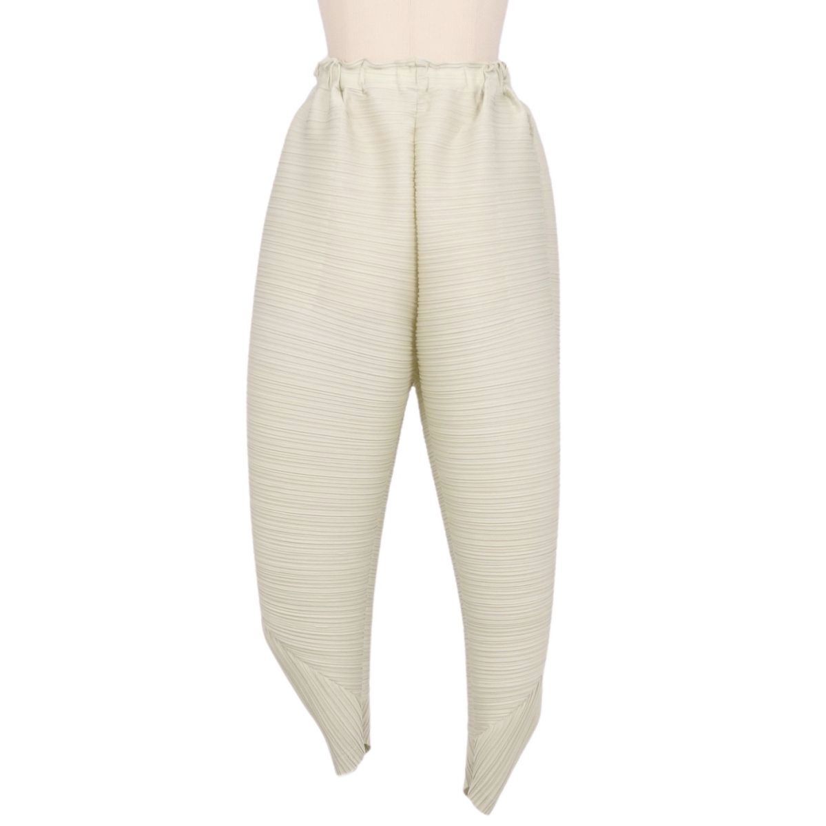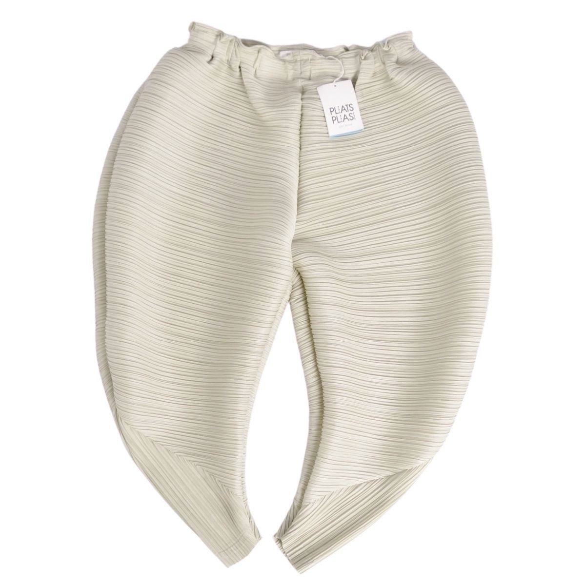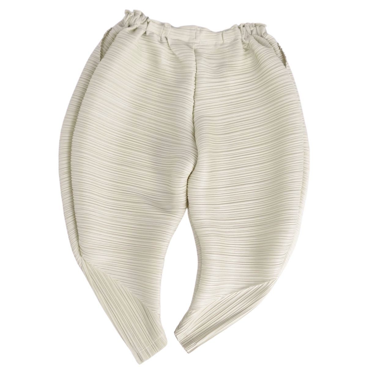 | 未使用 プリーツプリーズ イッセイミヤケ PLEATS PLEASE パンツ ロングパンツ 横プリーツ 無地 3(L相当) アイボリー |