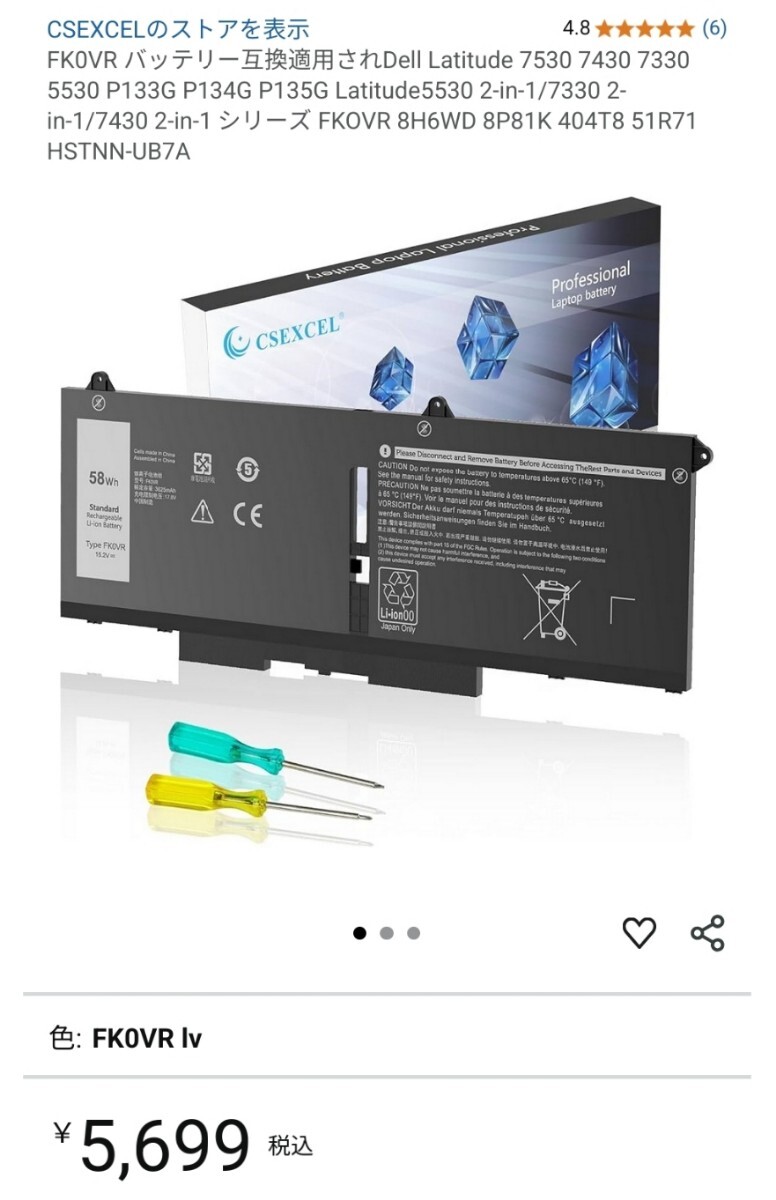FK0VR Dell Latitude用 ラップトップ互換バッテリーです☆