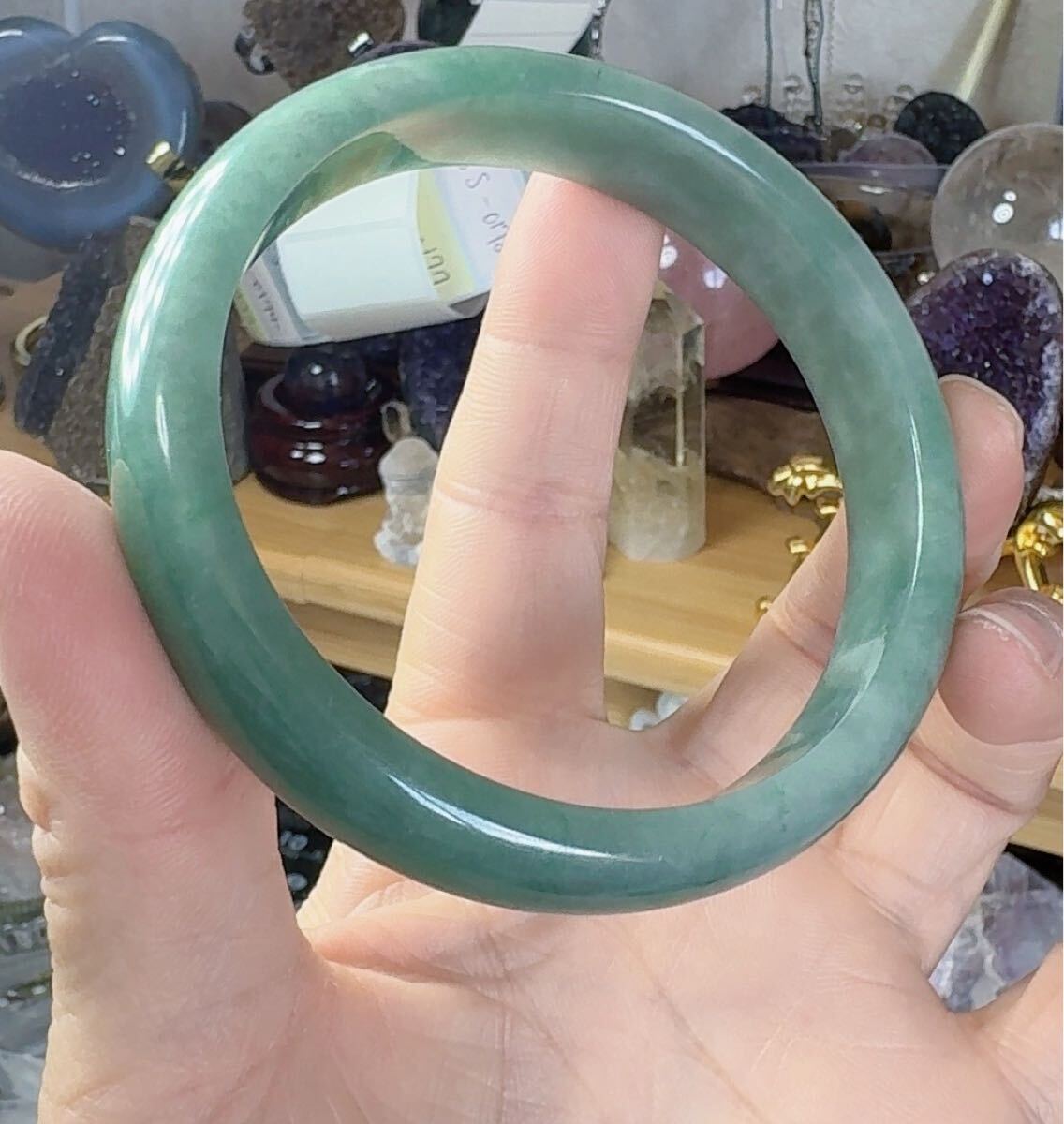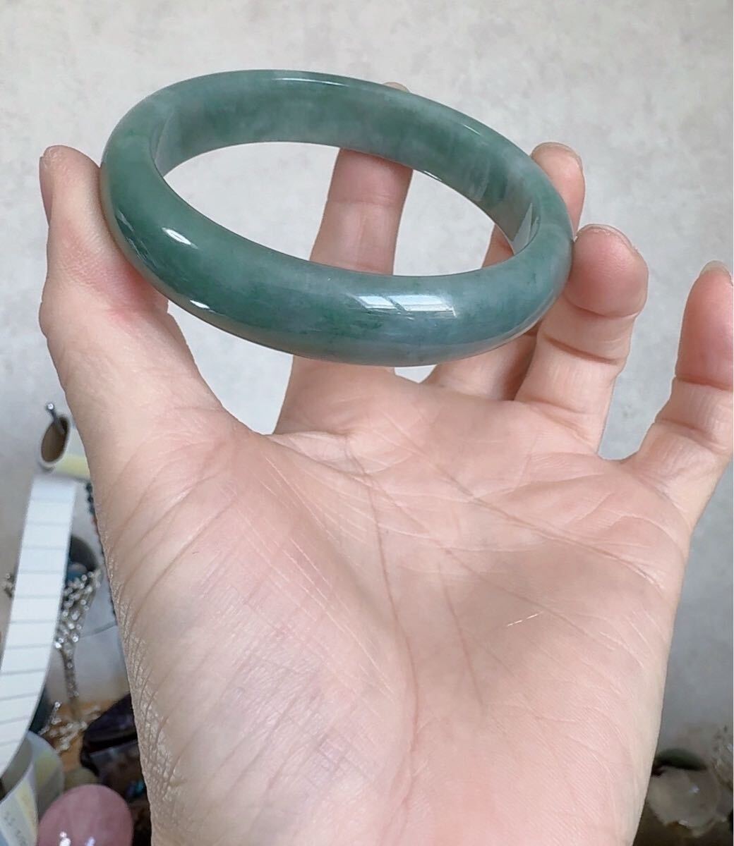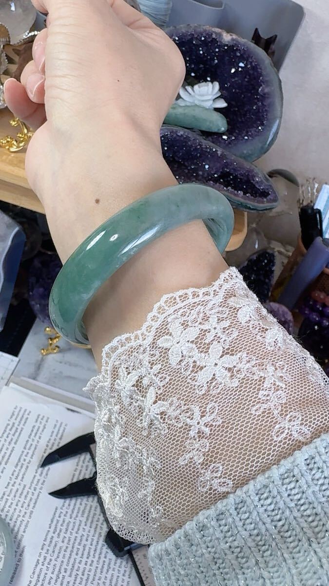 R2-0658天然本翡翠《本物保証》 ヒスイ ジェダイト バングル60.9mm 一点物 希少 縁起物 お守り パワーストーン ミャンマー