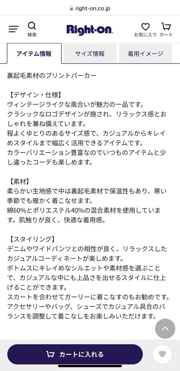 商品名 : 裏起毛プリントパーカー