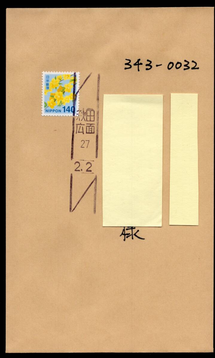エンタイヤ【60】実逓便 初日印 ヤマブキ/140円/単片貼 和文ローラー【秋田・広面/27.2.2】エンタイア