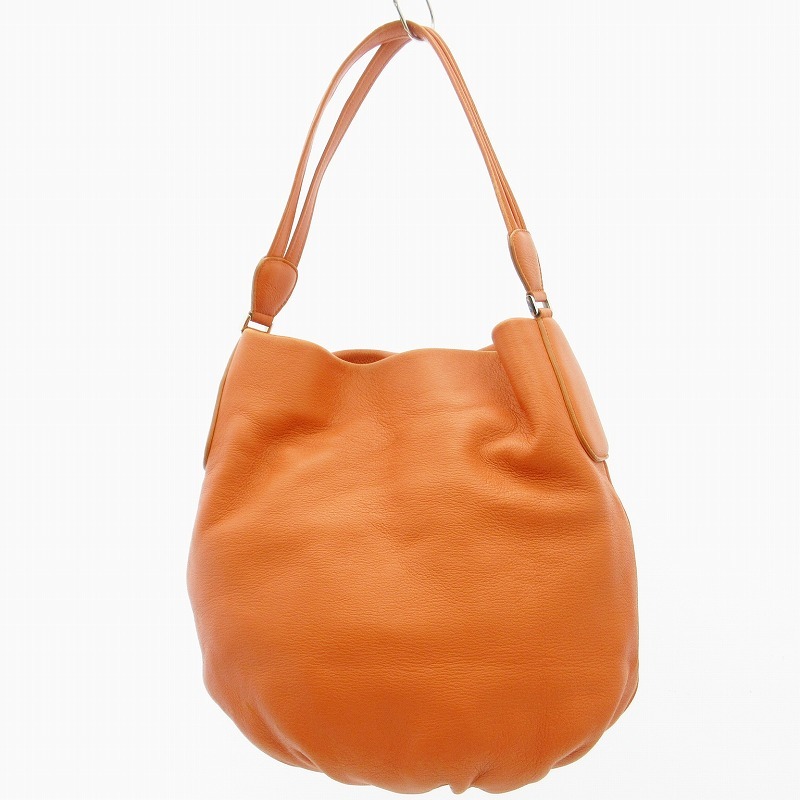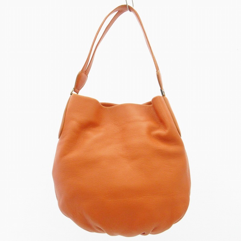 ヒロフ HIROFU レザー ワンショルダーバッグ ハンドバッグ イタリア製 本革 オレンジ 0312 レディース