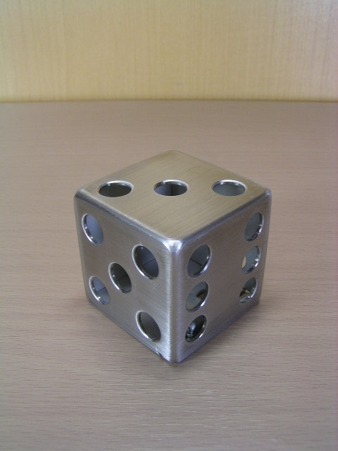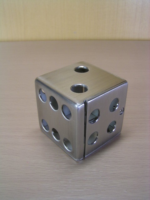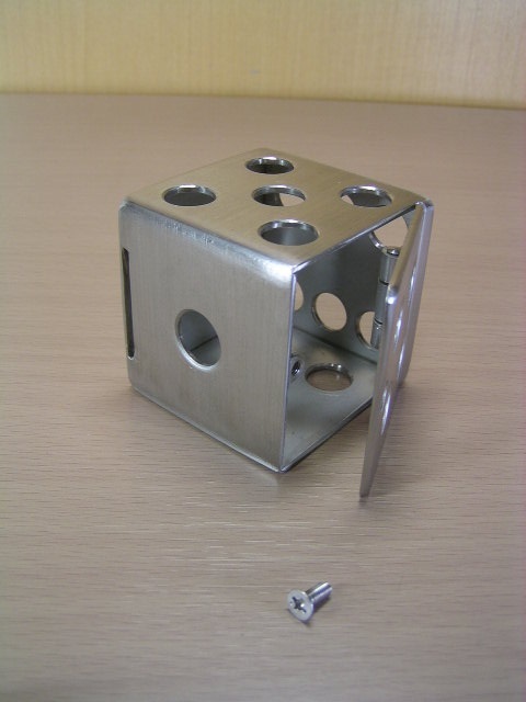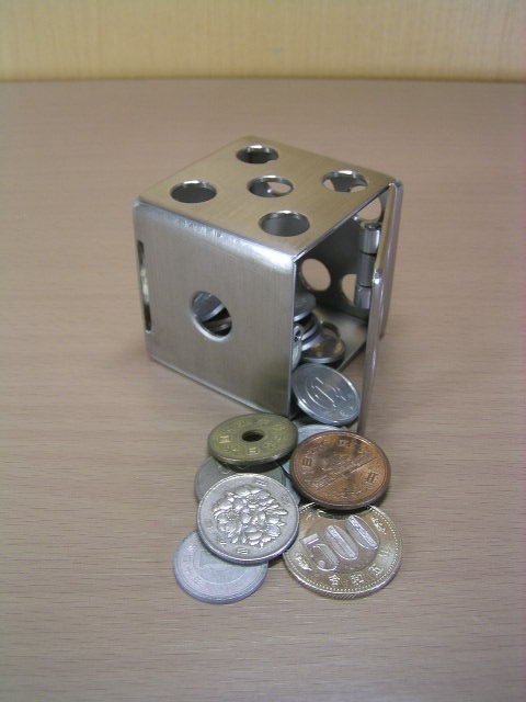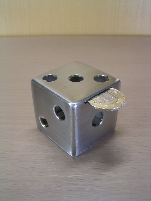 多機能のサイコロ型~貯金箱で、ステンレス製(SUS304)ハンドメイド品です