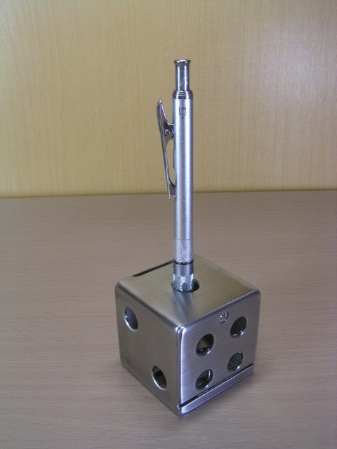 多機能 サイコロ型 貯金箱 5cm角 ペン立て ペーパーウエイト 文鎮(ぶんちん) ステンレス製 ハンドメイド コインバンク