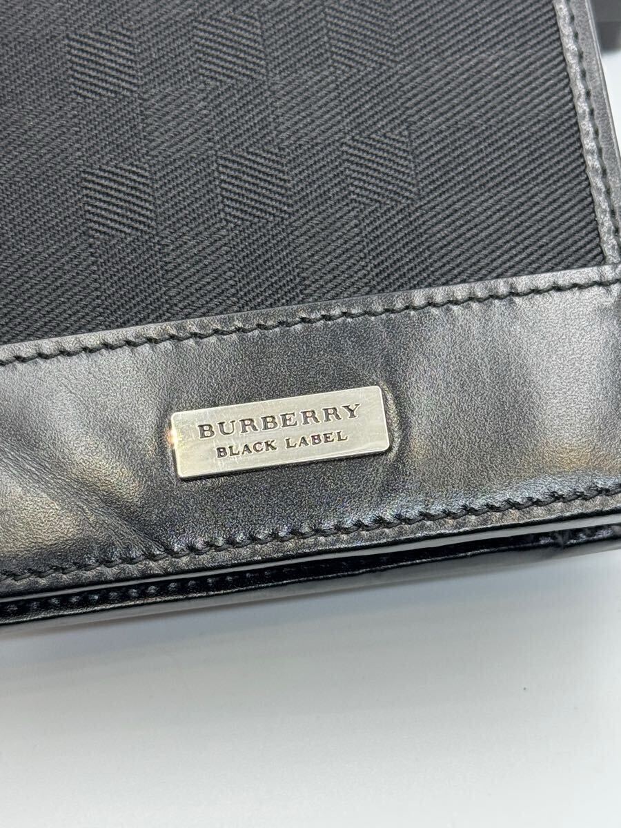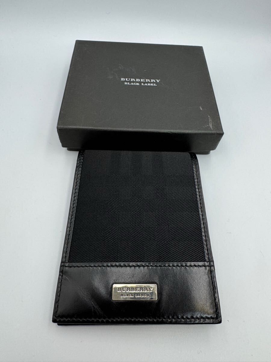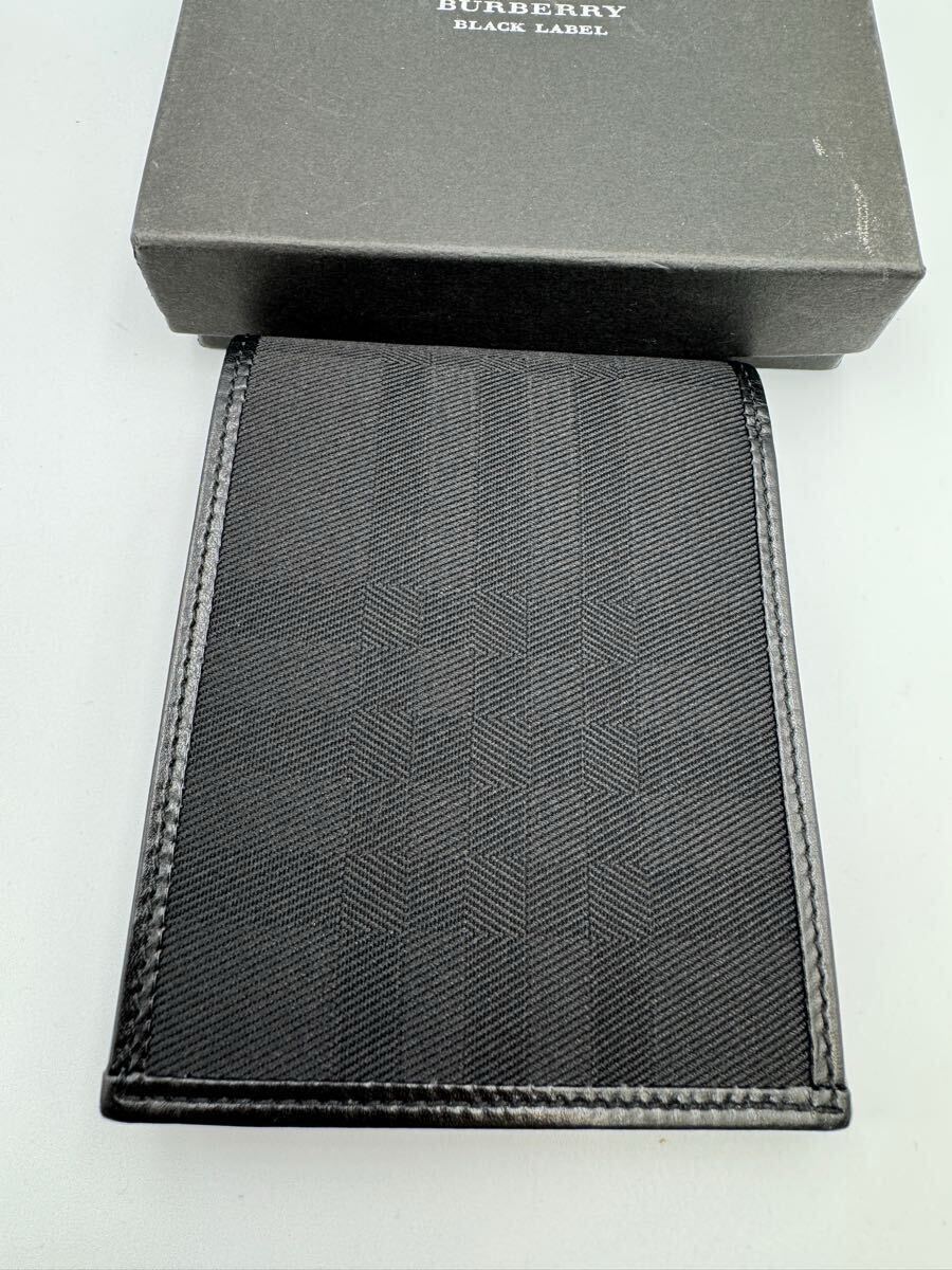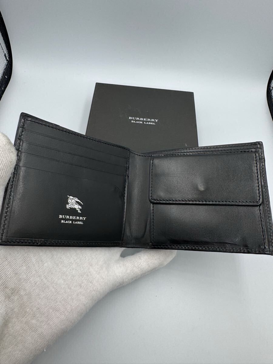 極美品 バーバリー ブラックレーベル 二つ折り財布 ブラック レザー 小銭入れ付き メンズ カードケース コインケース クレストブリッジ