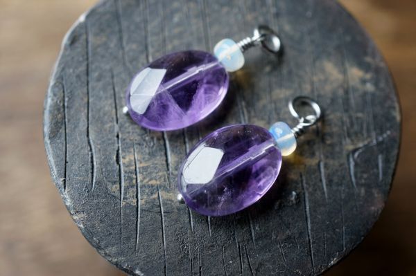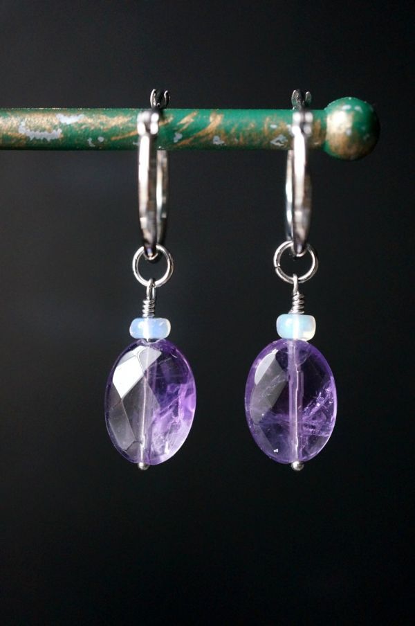 【フープ用チャーム】サージカルステンレス 241 アメジスト・エチオピアオパール チャーム 1ペア 金属アレルギー対応金具使用