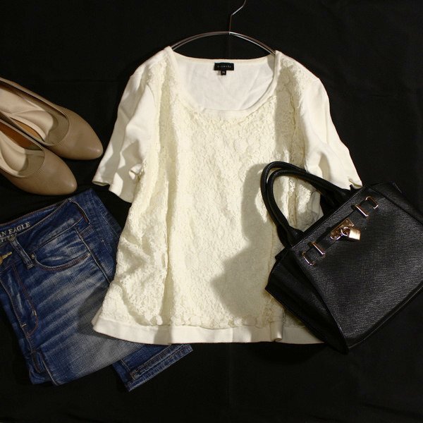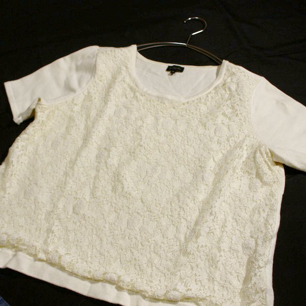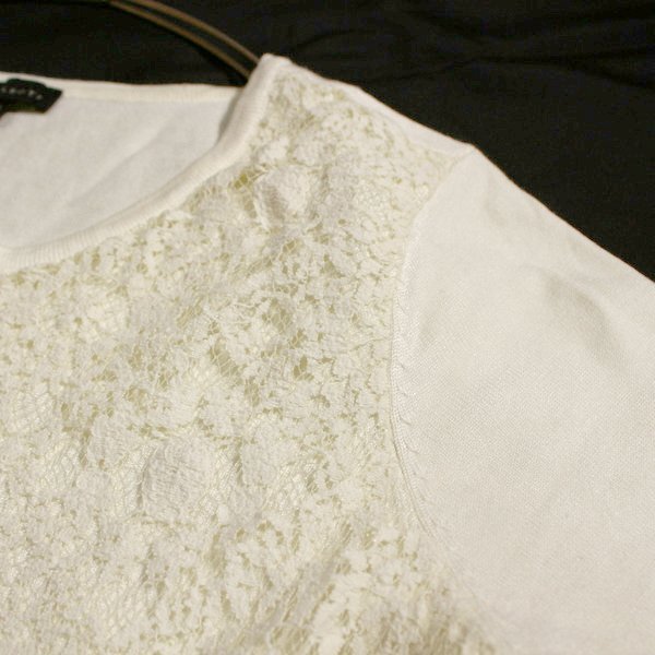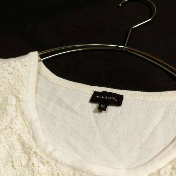 美品 TALBOTS タルボット 大きいサイズ XL レース重ね ストレッチ ニット プルオーバー 春 夏 25A03