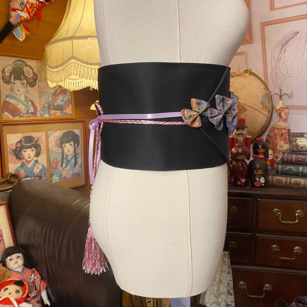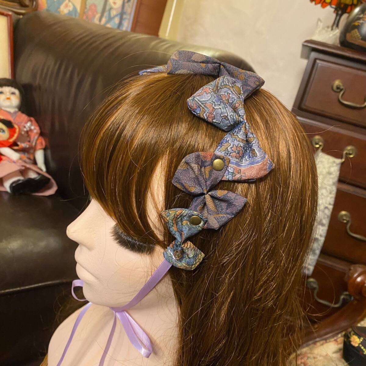 【着物リメイク 帯締め 帯飾り おりぼん ティアラ ヘッドドレス カチューム 2wayヘアアクセサリー 和洋折衷 レトロ 和ロリータ しなやかなラベンダーカラーのリボンが優しい彩りを添え、どこか幻想的な雰囲気を演出 K-2】
