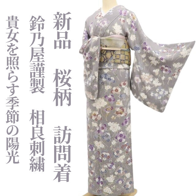 tomihisa 新品 鈴乃屋謹製 相良刺繍 桜 着物“花満開に心を満たすとき…貴女を照らす季節の陽光”正絹 仕付け糸付 訪問着 5460