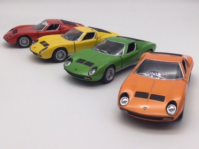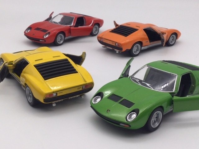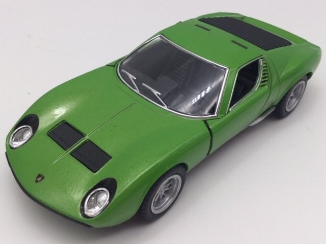 1/34スケールのランボルギーニ ミウラP400SV キンスマート社製 海外ライセンス品 お届けするのは画像1枚目の商品のみとなります。 画像2~4枚目は共通画像となりますのでご注意下さいませ。 SV(Sprint Veloce)とは、「より速い車」という意味。 ミウラの特徴とも言えるルーバー式リアウィンドウもリアルに再現されています。 サイズ:全長約12.8センチ 幅約5.3センチ 高さ約3センチ ボディはダイキャストメタル製、シャーシや内装はプラスチック製。 プルバック機能付きですのでチョロQみたいに走らせることができます。 両サイドドア開閉可能。 内装・ホイールはブラック! ※こちらの商品は箱付きではございませんのでご注意くださいませ。 ●神経質な方にはお勧めできません● 1台1台検品し、丁寧に梱包させて頂きますが 輸入時からのかすかな汚れ・塗装ミス・擦り傷等はあるかもしれません。 |
