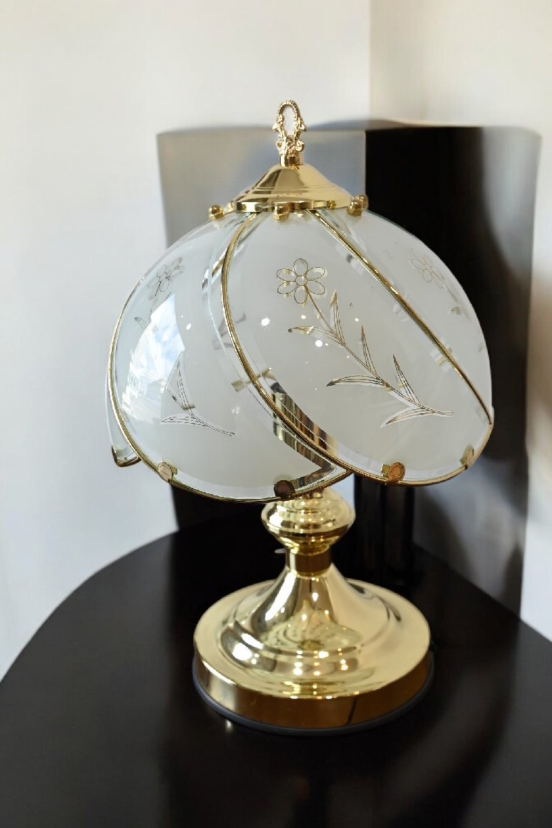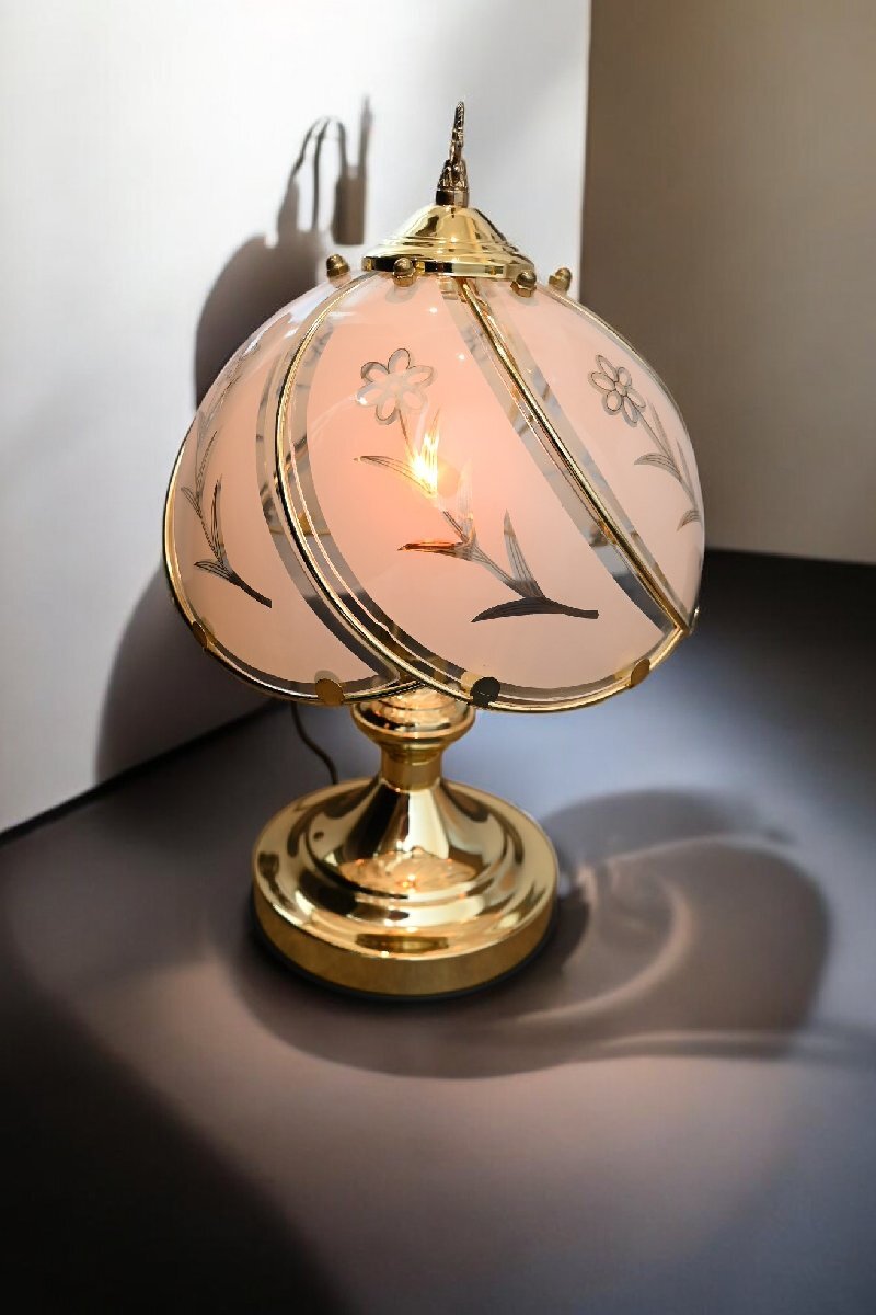 ○可愛い野の花柄のガラス傘 スタンドライト 金色台座 照明 レトロポップ ガーリー ヴィンテージ 古道具のgplus広島 2503i