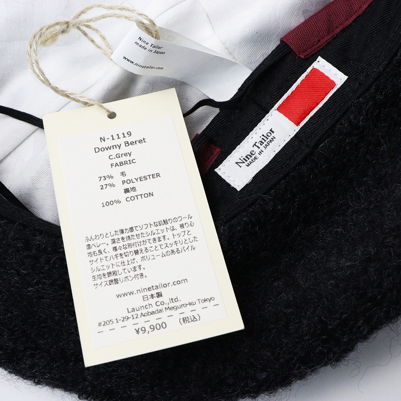 美品 ナインテイラー Nine Tailor N-1119 Downy Beret/チャコールグレー ウール ベレー帽 帽子【2400014334869】
